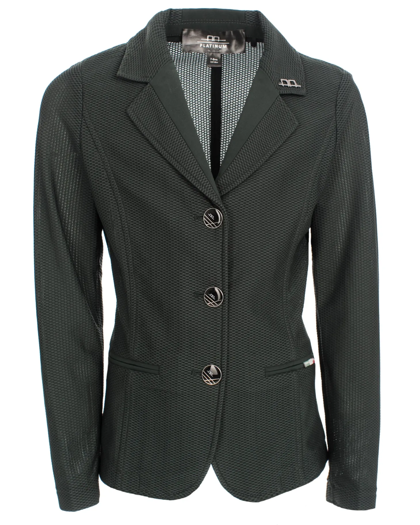Based on the award-winning ladies’ design, this AA® Kids’ MotionLite Competition Jacket is unrivaled in breathability and stretch. A must for warm competition days, this children’s show jacket is made from super-lightweight, opaque mesh fabric that dries quickly. Classic Italian tailoring creates a second skin fit, while the exceptional stretchiness makes it an ideal option for the growing or hard-to-fit child.