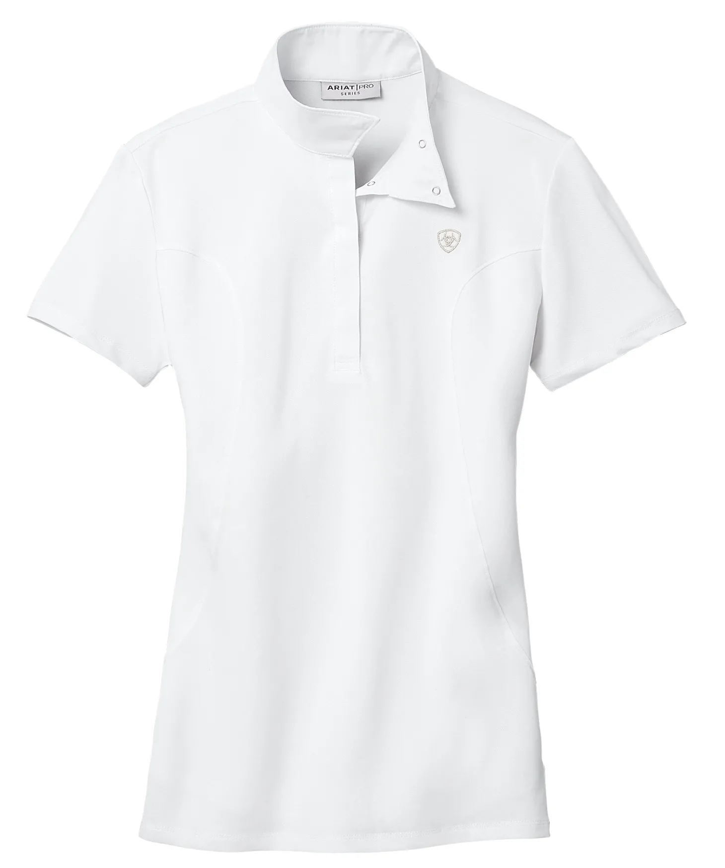 Technical details for exceptional riding comfort will make the Ariat® Aptos Show Top one of your favorites for showing and schooling. Made of a blended piqué fabric with Ariat’s Moisture Movement Technology™, this shirt allows perspiration to move away from your skin to keep you feeling dry.