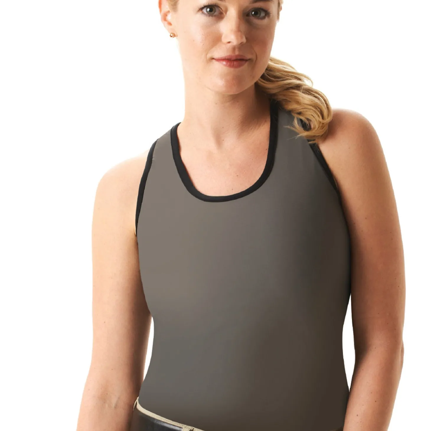 The Cheata Equestrian Trotter Tank offers all the same technology, structure and stability of the Trotter Bra, but hidden under a silky tank shell. The Trotter Tank creates a sleek silhouette while providing exceptional security, stability and comfort. This strong, stabilizing racer back athletic tank contours to your shape. State-of-the-art Stretx performance compression fabric with controlled localized stretch ensures the perfect weight distribution, wicks moisture and won’t break down or stretch with repeated wear.