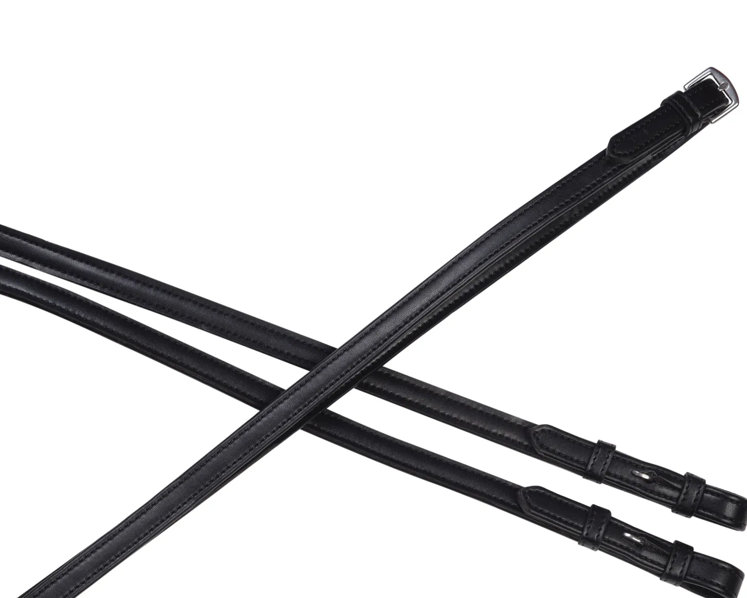 Collegiate® Syntovia+ Plain Flat Reins are soft and supple in high-quality synthetic leather that requires only a damp cloth to clean. Crafted with durable stainless steel fittings, these reins are perfect across disciplines for everyday use or competing, and they are suitable as either snaffle or curb reins. Classic hook stud billets and center buckle. They partner beautifully with Collegiate Syntovia+ bridles.