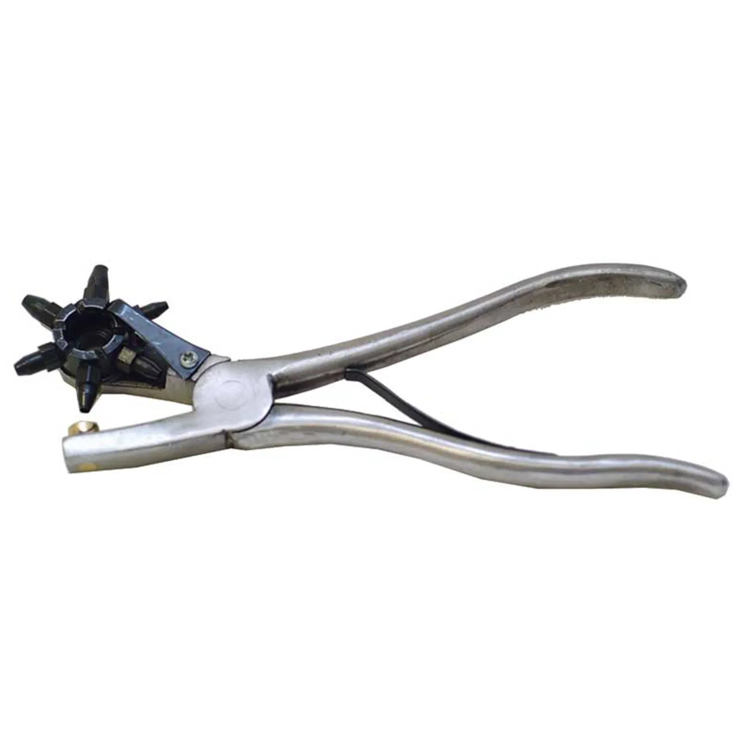 This Deluxe Leather Punch with revolving head lets you punch holes in leather strap goods. Provides six sizes of holes.