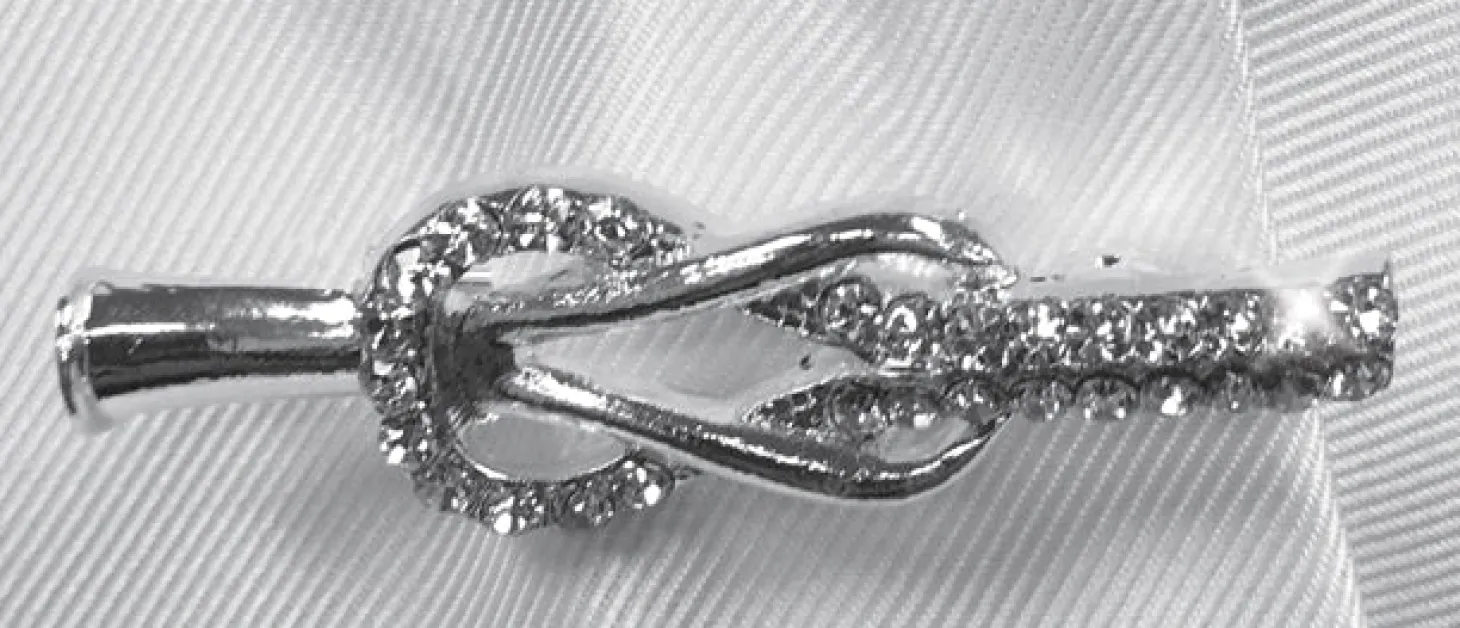 Beautiful silvertone Locket Stock Pin by Equetech has a lock loops design embedded with crystals. Safety clasp in back.