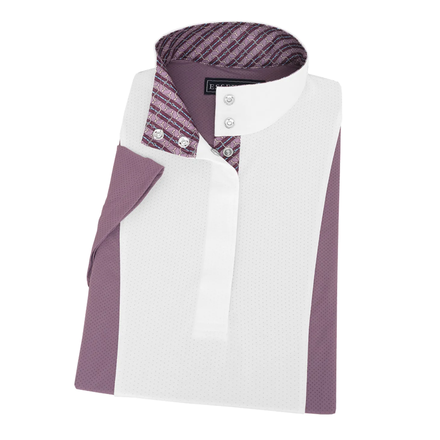 For comfort and color, this Essex Classics Luna Performance Short Sleeve Show Shirt makes a perfect choice. A white, full-length panel front with crisp white show collar partners with a solid color on the sides and back for a flattering look. Print trim details the inside of the collar and placket.