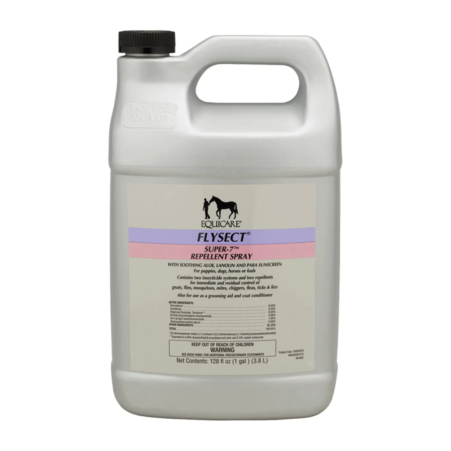 Farnam® Equicare® Super-7 Repellent Spray provides immediate and residual control of gnats, flies, mosquitoes, mites, chiggers, fleas, ticks and lice. Formulated pyrethrins and permethrin, Super-7 also contains aloe and other emollients to help moisturize the horse’s skin. Added PABA sunscreen protects against harmful UV rays. Gallon.
