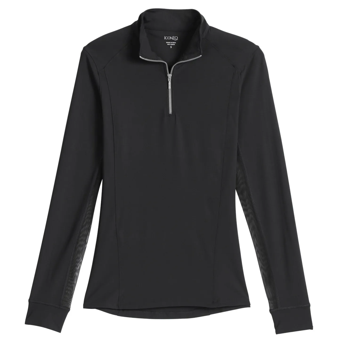 - Mock collar and quarter zipper.