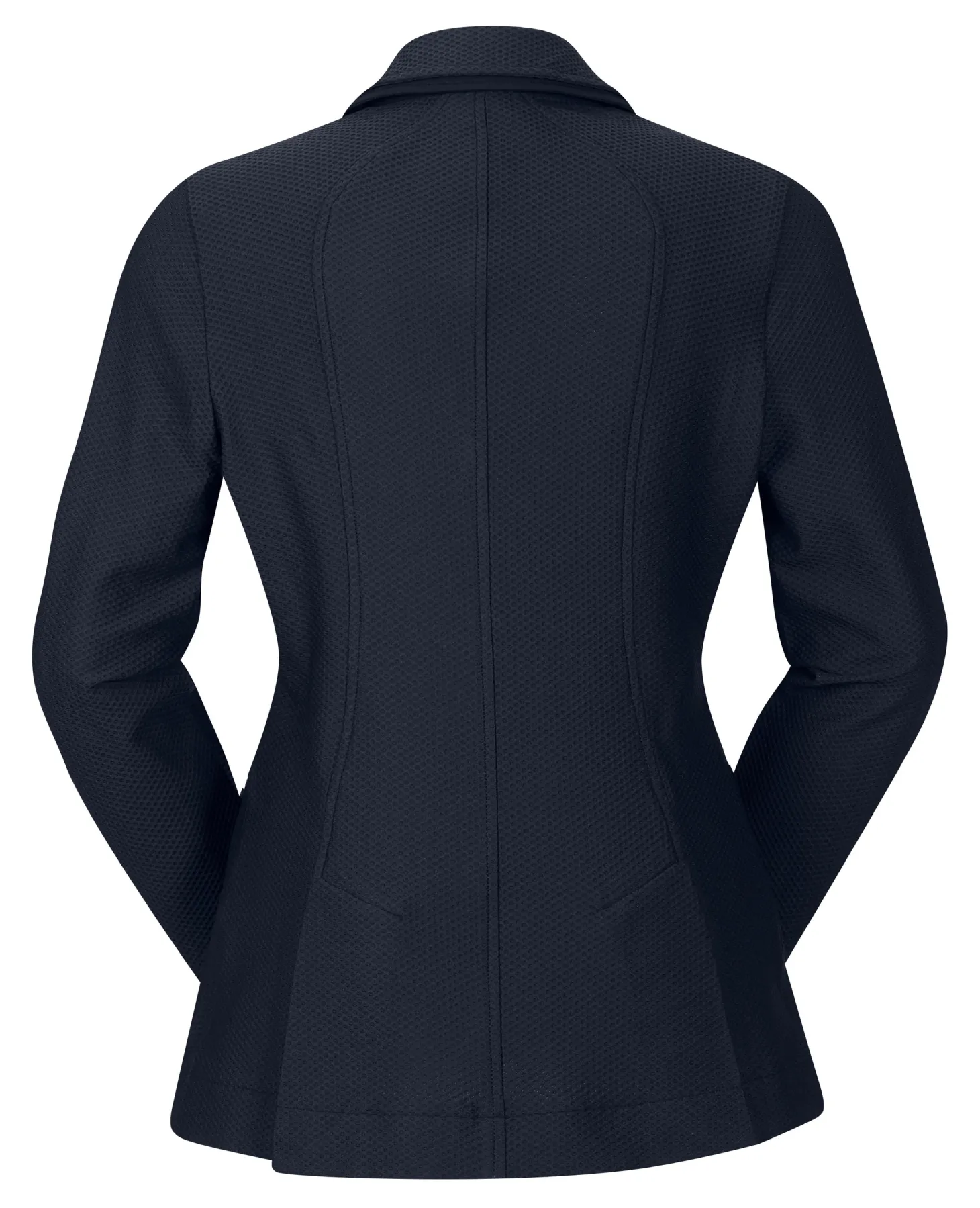 The Kerrits® Affinity Aero Show Coat merges high-tech, quick-dry fabric with elegant styling to keep competitors feeling cool and looking great. Textured, “no-see” stretch mesh fabric provides perfect coverage and the ultimate freedom of movement. It allows air to flow through its open weave, maximizing breathability and comfort.