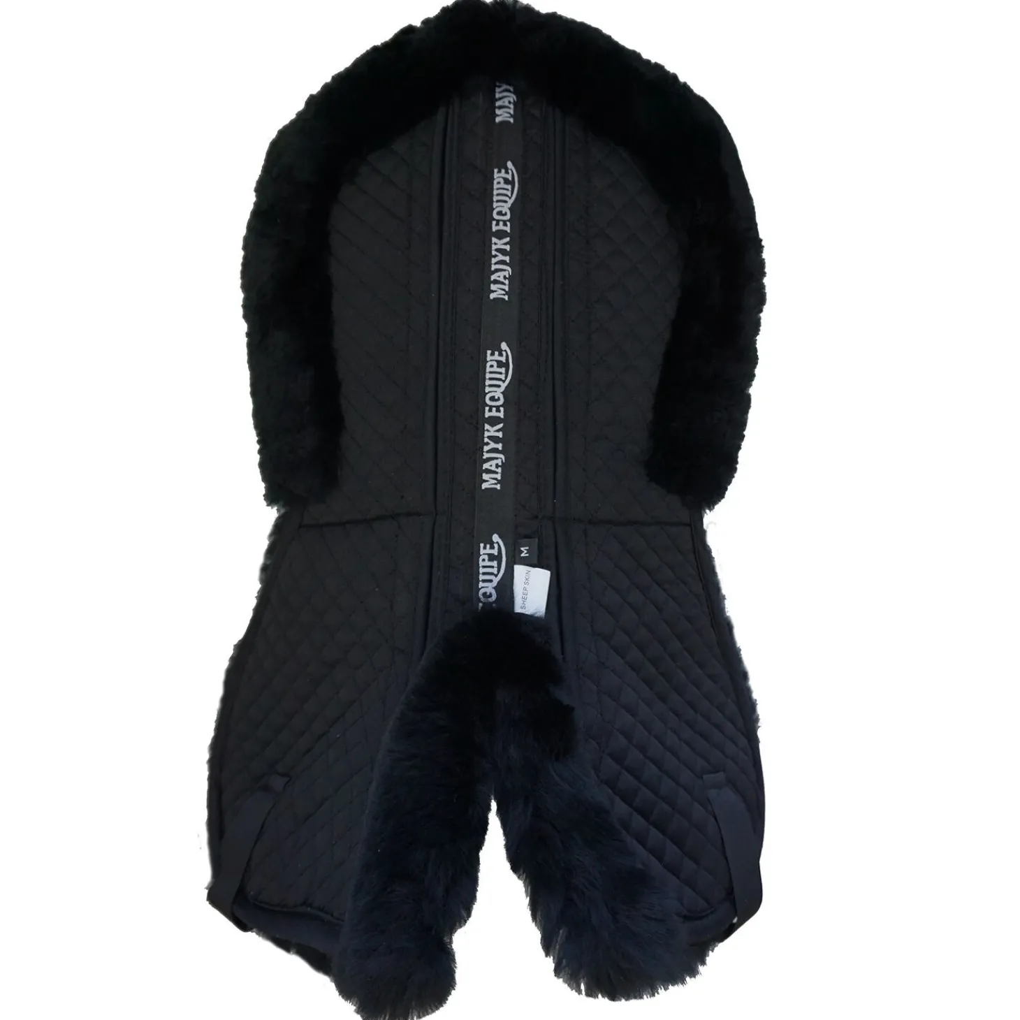 Customizable shims provide the ultimate combination of comfort and technology. Constructed from a high-loft, dense 1 1/4″ long 100% Australian fleece with lightweight fabric, the Majyk Equipe half pad combines natural cushioning and moisture wicking qualities of sheepskin with ultimate impact protection. The pad features unique Split Wither Relief technology to relieve pressure across the withers and Spine Relief along the underside of the pad.