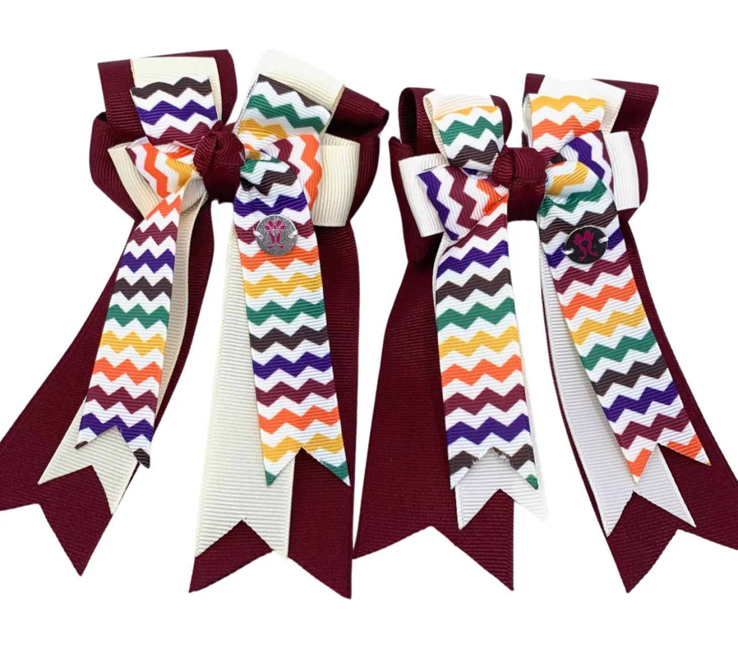 Handmade in Florida, PonyTail Bows are great accessories for young competitors. These triple-layer show bows come in cute and classic patterns for hunters and jumpers and are attached to a sturdy French barrette.