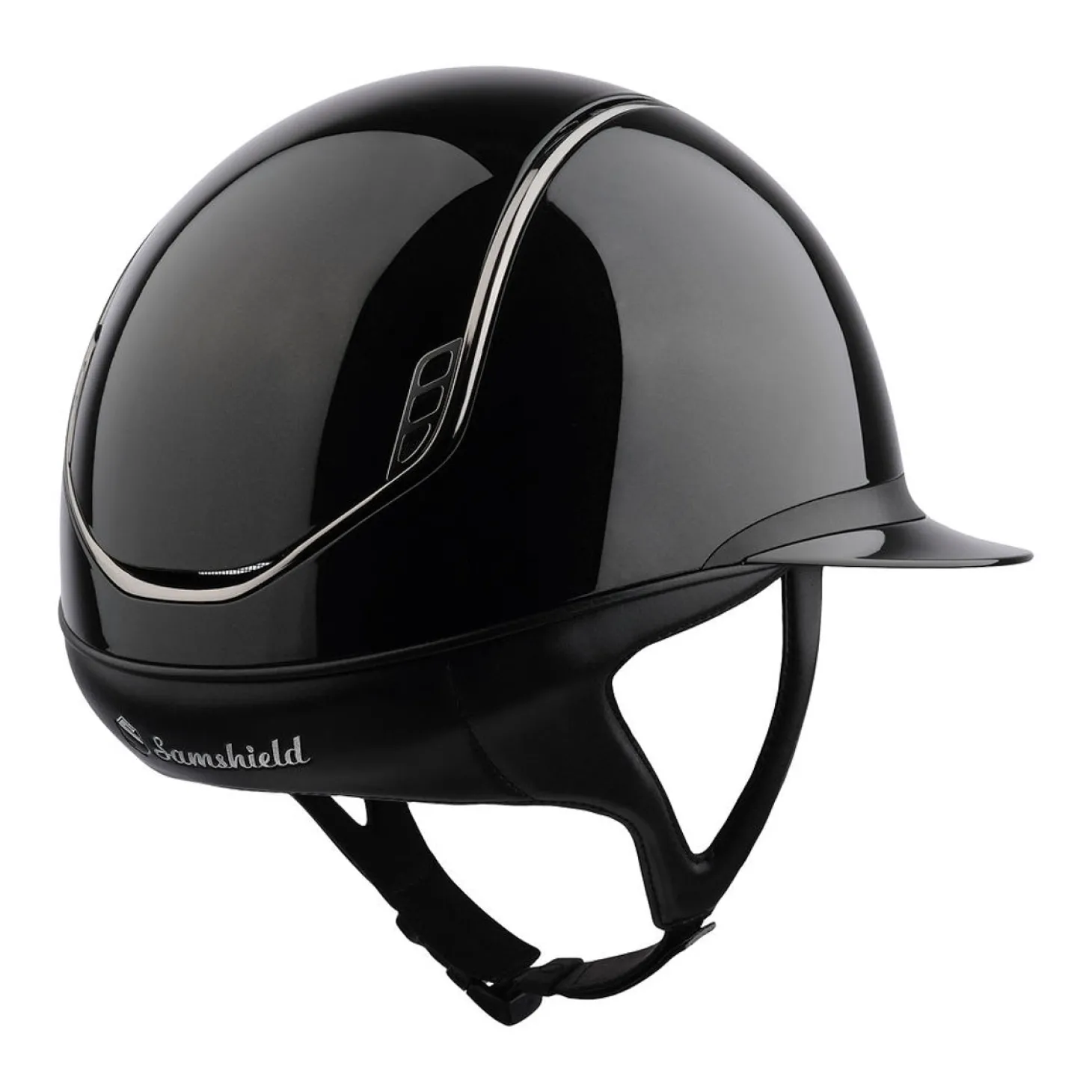 After four years of research and development, the Samshield Miss Shield 2.0 Shadow Glossy Helmet meets the demands of discerning riders. Inspired by women’s classic hats this helmet is equipped with a long visor and a customizable frontal band. Designed on the base of the classic Shadowmatt, it is made to meet the current demands of riders for fit, unprecedented comfort and optimized airflow, while still meeting current safety standards. The helmet is made from cutting-edge materials to enable riders to enjoy their sport to the full and without restraint. The outer shell is made of premium materials including polycarbonate, which is a material used for elite motorcycle helmets, anti-scratch paint and optimal airflow thanks to its unique 6-point ventilation system. The semi-rigid chinstrap eliminates any risk of the helmet tipping over in the event of violent movement. Internal comfort foam is removable thanks to a much stronger clip system than the scratch/Velcro® system. It can therefore be washed (max. 30°C) at will in order to constantly be able to wear a clean and fragrant helmet. A perfect fit with memory foam, ensures constant thickness over years of use and the new integrated chinstrap adapts to all hairstyles, including the trainer’s bun.