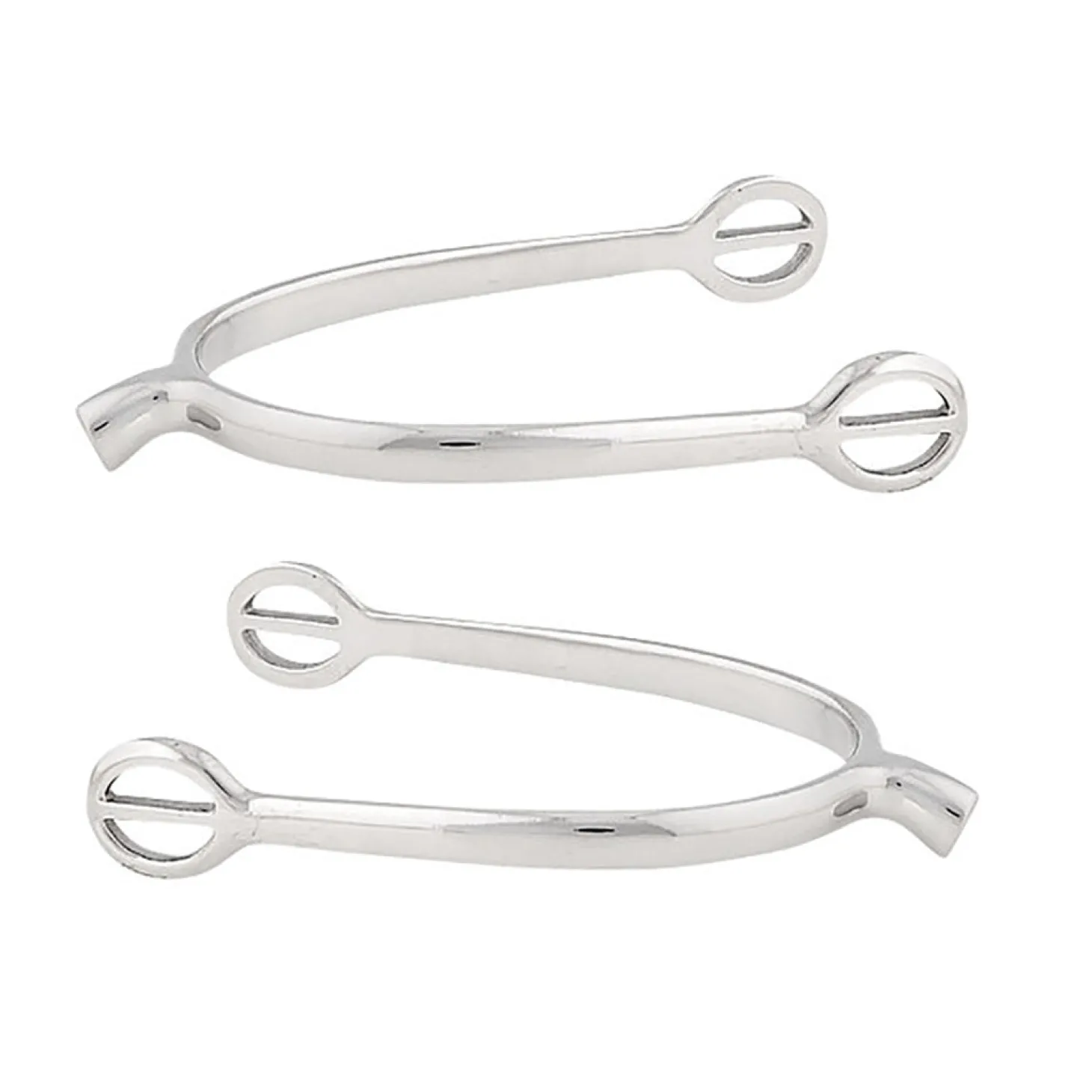 Suffolk™ Children’s Tom Thumb Spurs in stainless steel are sized to fit kids’ boots. 1/4″ neck. Pair.