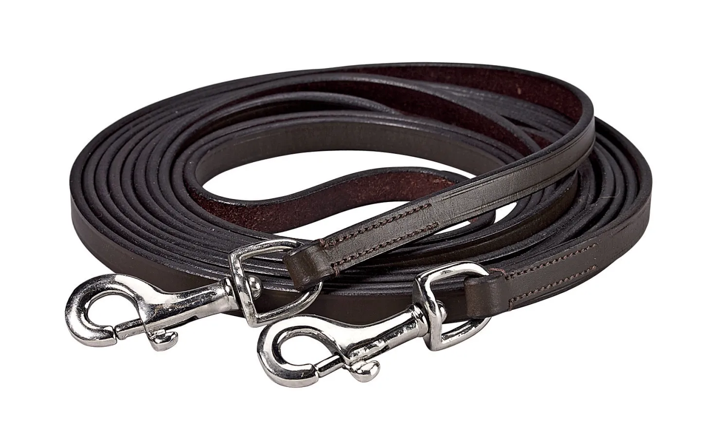 Suffolk™ Draw Reins with Snaps in good quality leather measure 102″ long on each side and 1/2″ wide. These leather draw reins feature convenient snap ends for easy on and off.