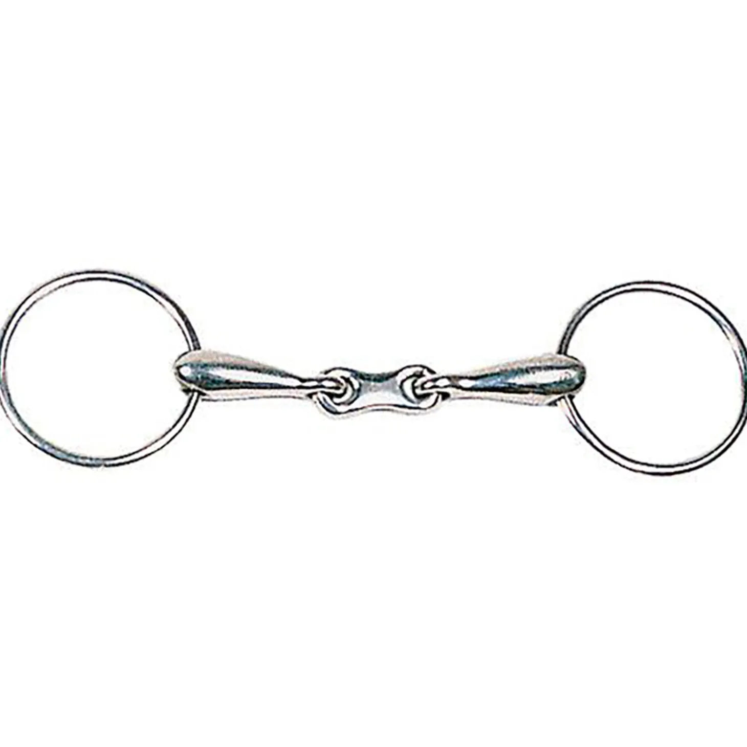 The Suffolk™ French Link Loose Ring Bit has a flat, hour-glass shaped center piece. Loose rings can help prevent the horse from grabbing or bracing on the bit.