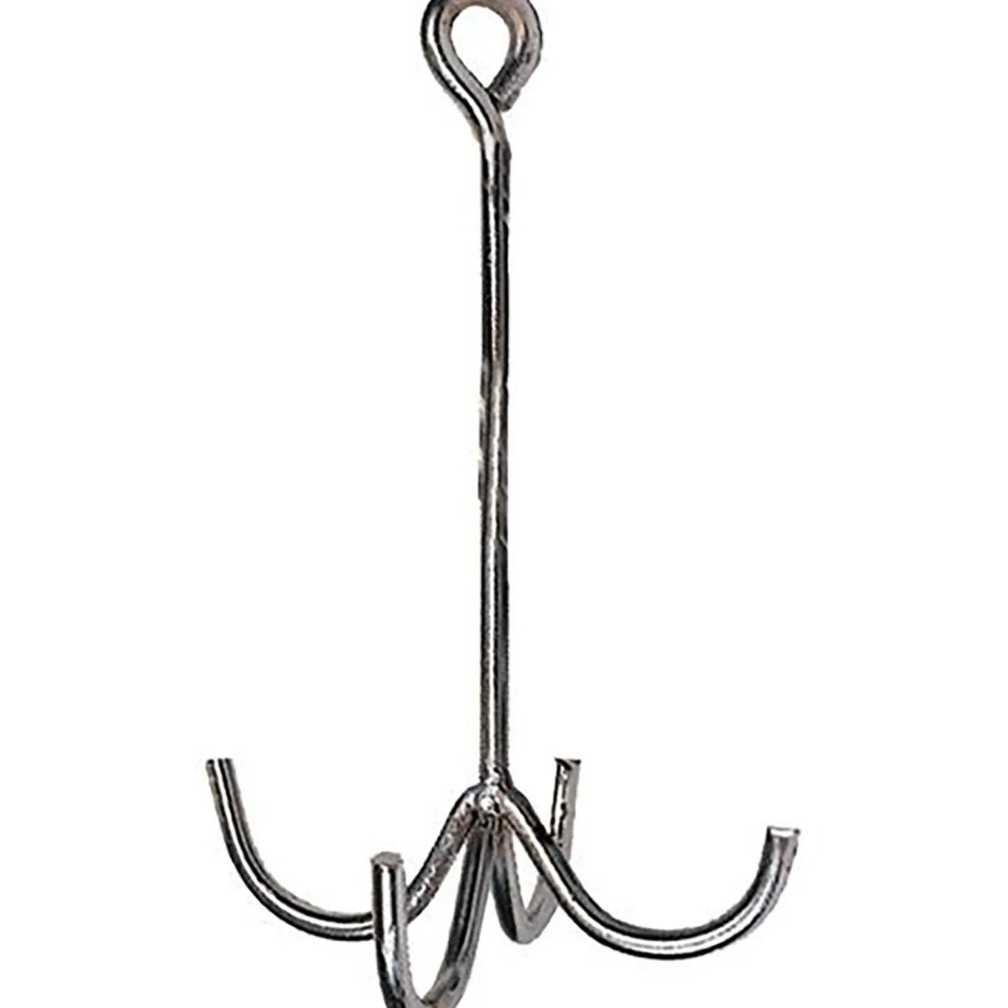Sturdy and reliable, these four-prong tack cleaning hooks are great for organizing and hanging halters, leads, bridles and training equipment in your tack room especially when wall space is limited. For cleaning leather bridles and strap goods, these hooks are indispensable. No tack room should be without at least one. Keep one in your trailer, too, for storage and cleaning tack at shows. Features welded construction and a chrome finish with a large eye loop at the top for hanging. No sharp edges, it’s easy to place and remove items on the four blunted hook ends.