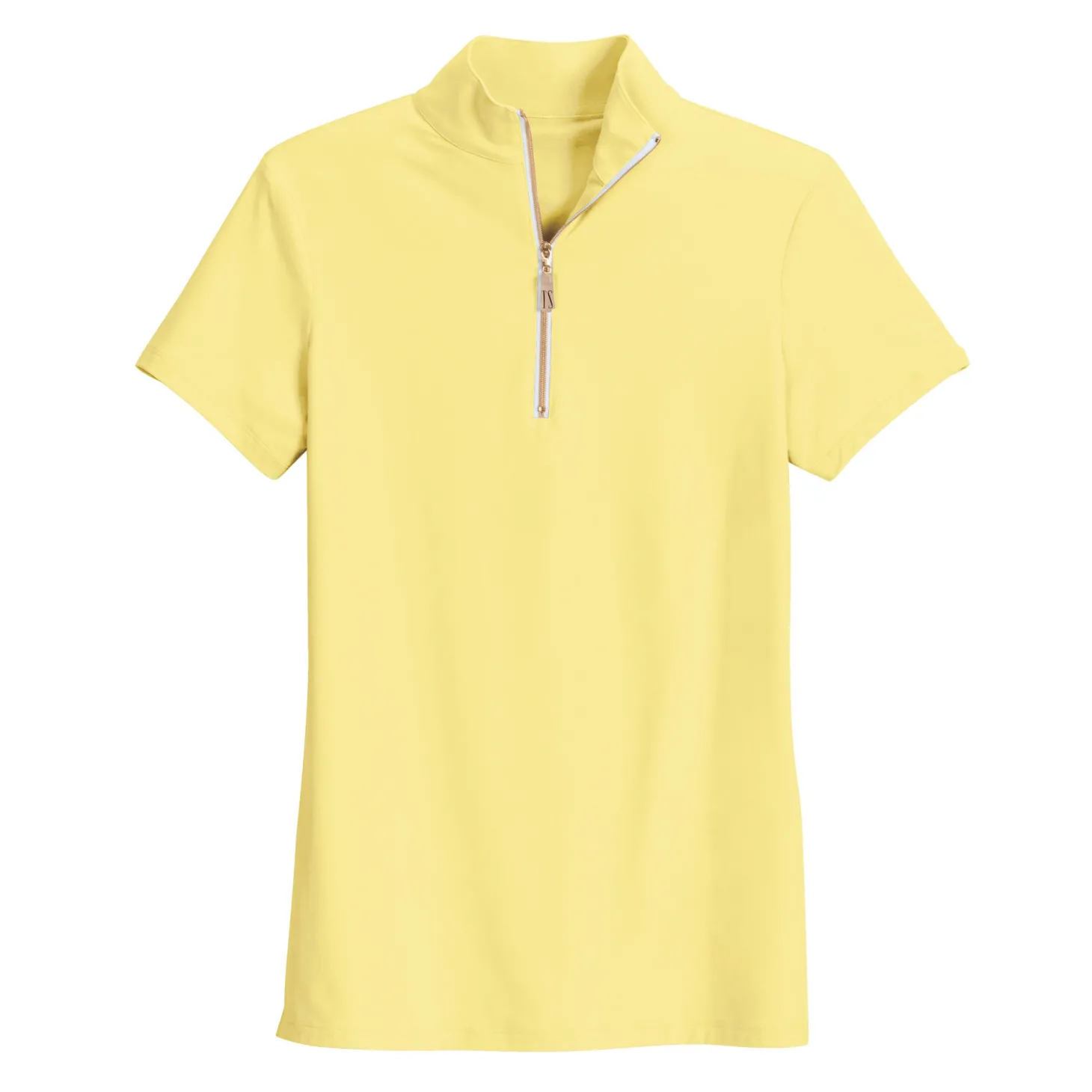 This semi-fitted riding top is lightweight, stretchy and moisture-wicking. A slightly brushed inner surface makes it feel luxurious on your skin. Styled for a polished look with a color-coordinated quarter zipper and stand collar.
