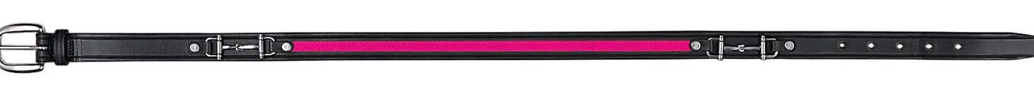 Add equestrian style and a pop of extra color with this Tory Leather Ribbon & Snaffle Bits Belt! Made in the USA from fine 1″ wide bridle leather, it has creased edges, two snaffle bits and a center overlaid with simulated ribbon. Sewn-on buckle.