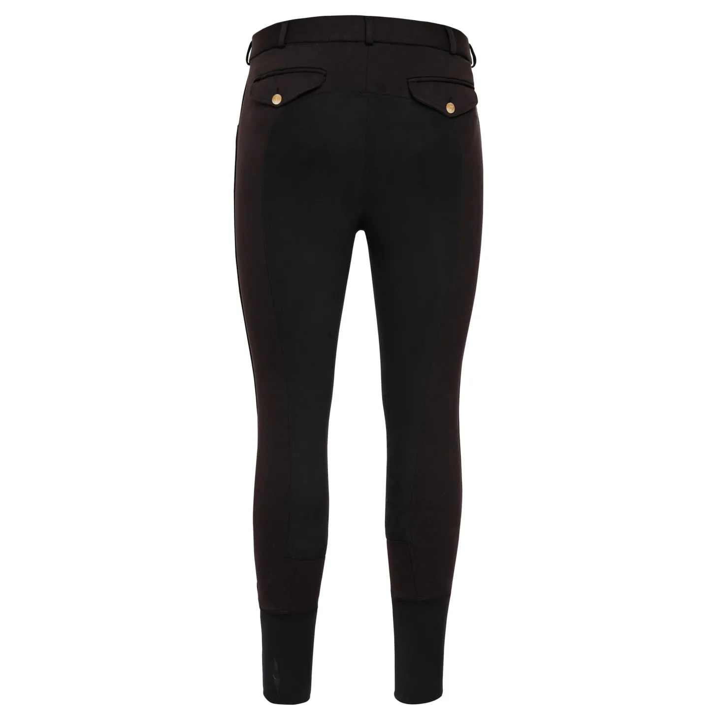 Made of a cotton blend fabric, it has an UltraGripp full seat to assist with in-saddle security. Contoured sock bottoms offer a seamless fit underneath boots.