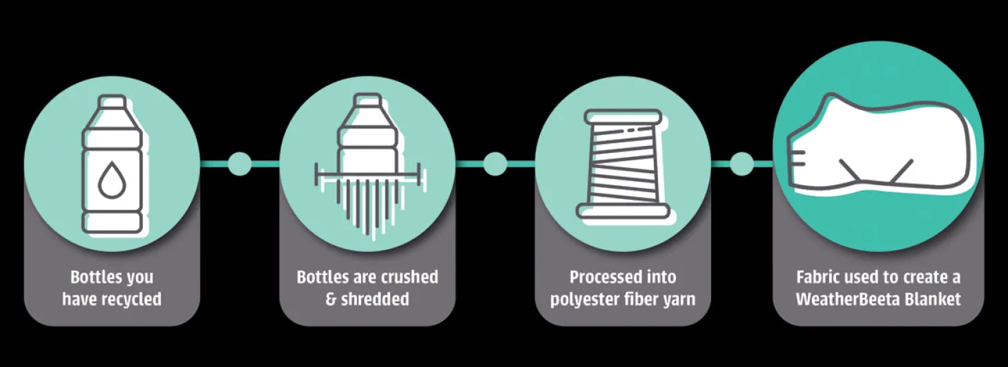 The manufacturing of each WeatherBeeta® Green-Tec 900D Detach-A-Neck Lite Plus prevents more than 340 plastic bottles from going into an ocean or landfill and uses far less energy (over 50% less) in the process. The Green-Tec 900D Detach-A-Neck Lite Plus is created from fabrics made with recycled plastics, which are processed into poly fiber yarn. Plus, it is packaged in recyclable materials that are also made from post consumer recyclable plastic (PCR).