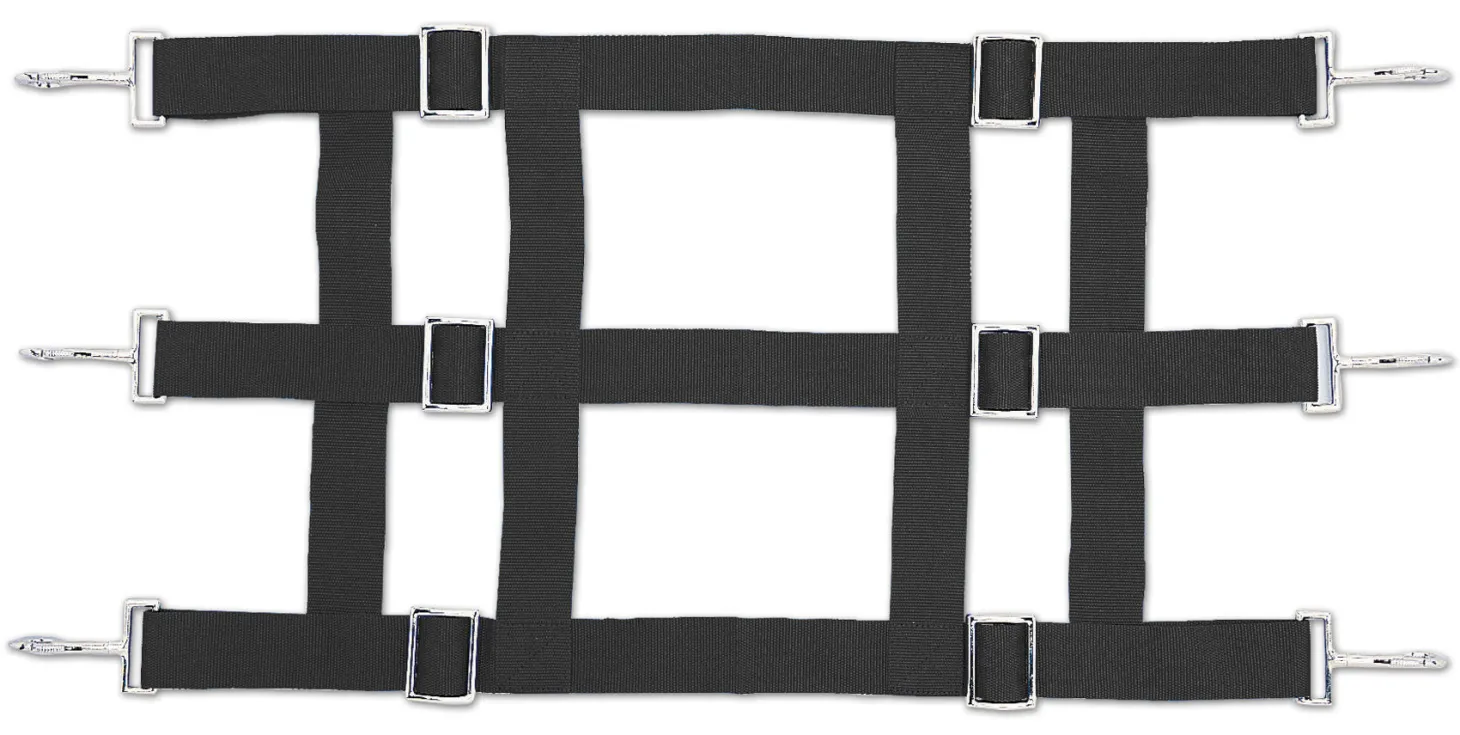 The Web Stall Guard is made of strong poly webbing. Adjusts in width to 48″.