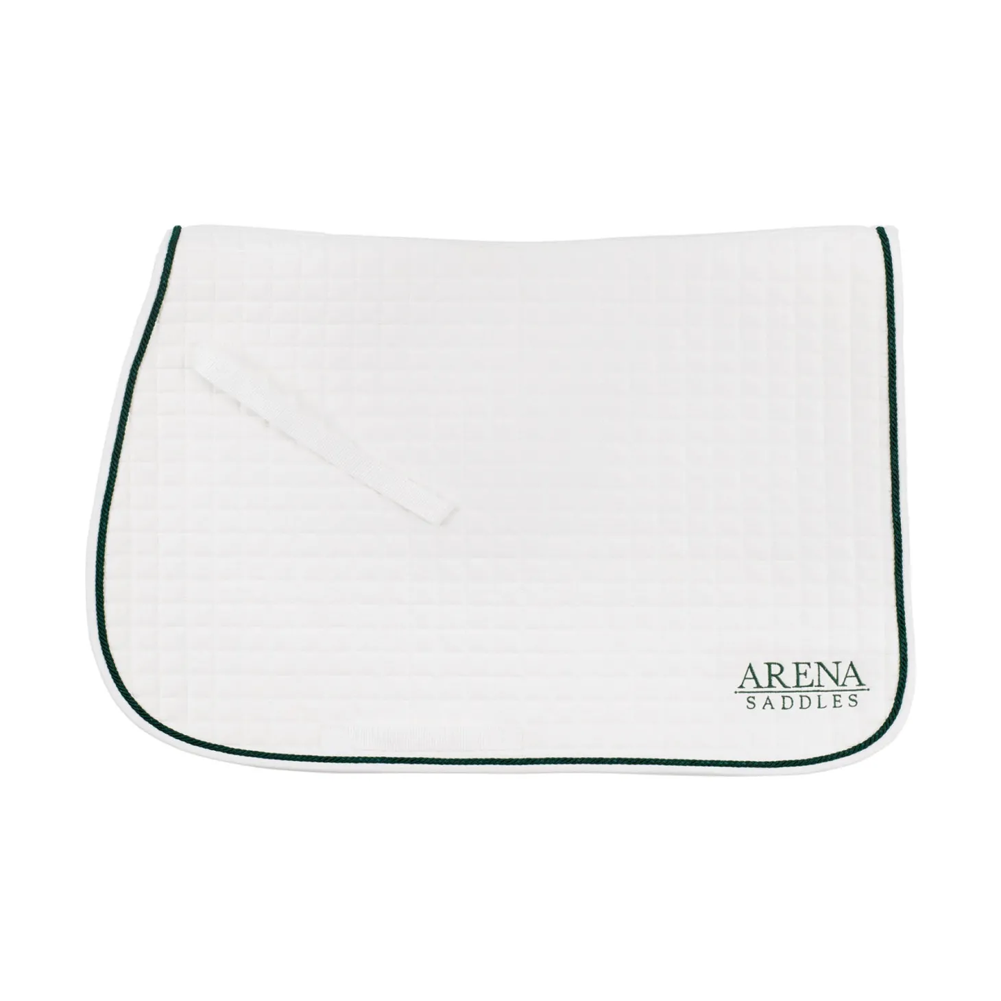 The Arena All-Purpose Saddle Pad pairs perfectly with your Arena Jump or All-Purpose Saddle. This smart and soft quilted cotton saddle cloth is trimmed with classic green rope trim. Billet straps add security.