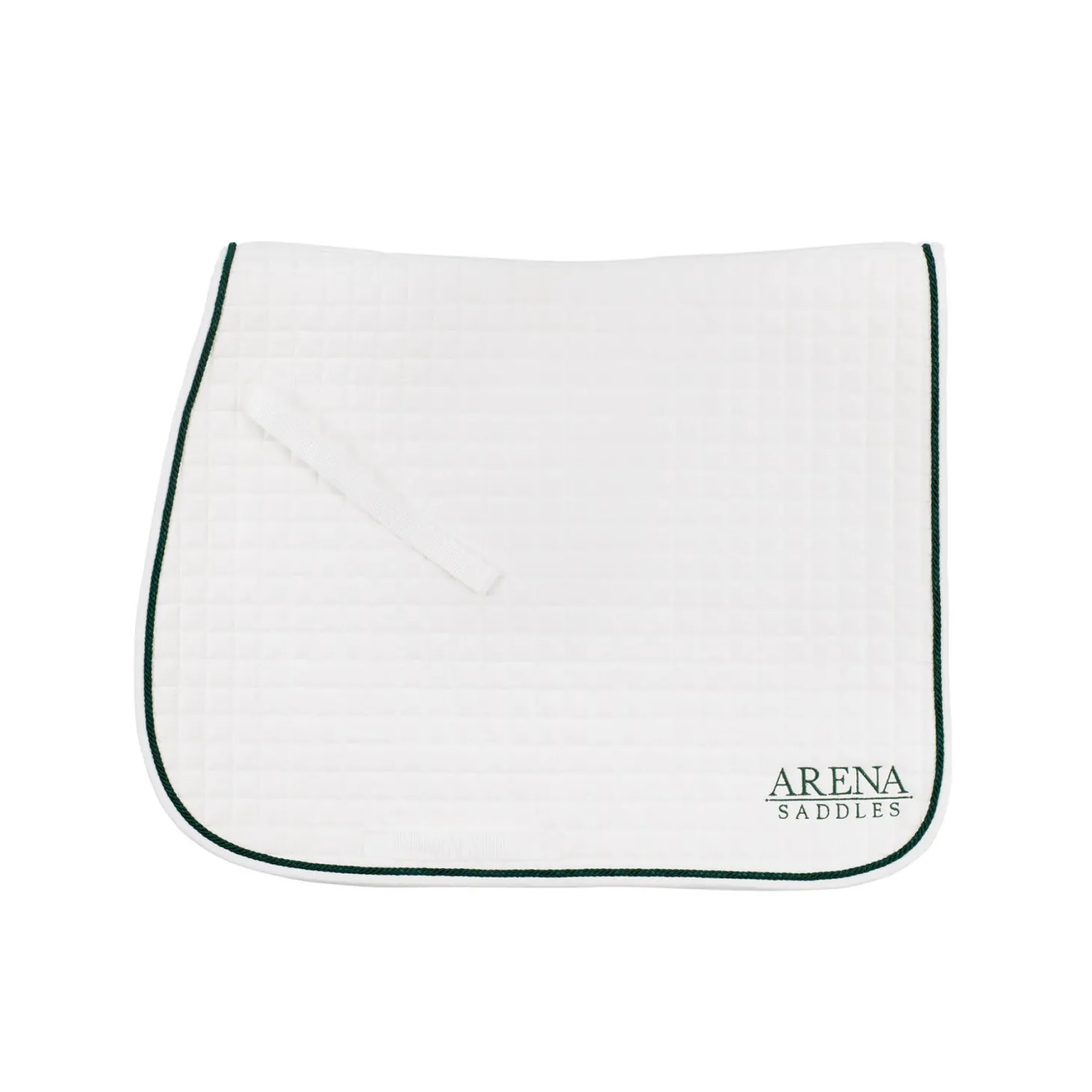 The Arena Dressage Pad pairs perfectly with your Arena Dressage Saddle. This smart and soft quilted cotton saddle cloth is trimmed with classic green rope trim. Billet straps add security.