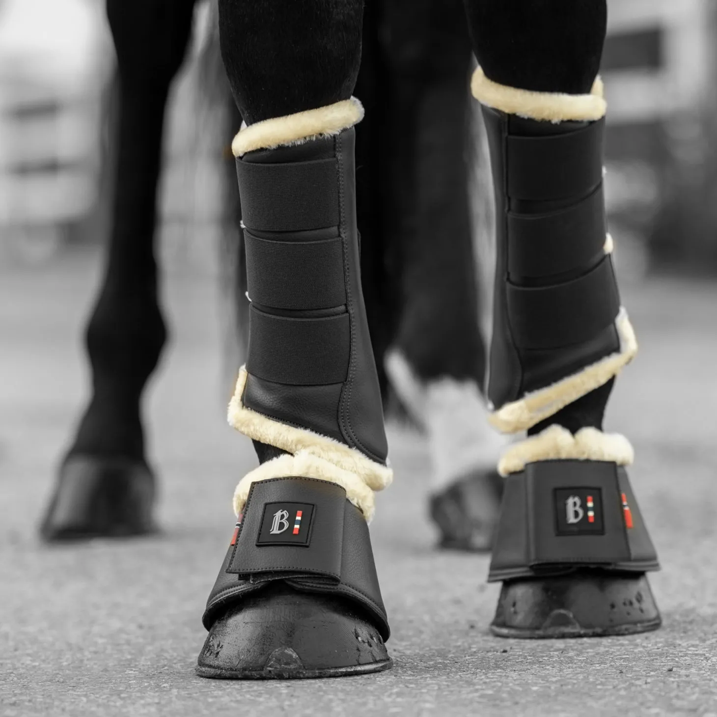 Classic, soft and protective, B Vertigo Wellington Fleece-Top Bell Boots are made from durable synthetic materials. The outer look like leather but is polyurethane; the lining is shock-absorbing neoprene. Faux fur trims the collar, and hook-and-loop closures provide security. Logo tab on closure. Pair.