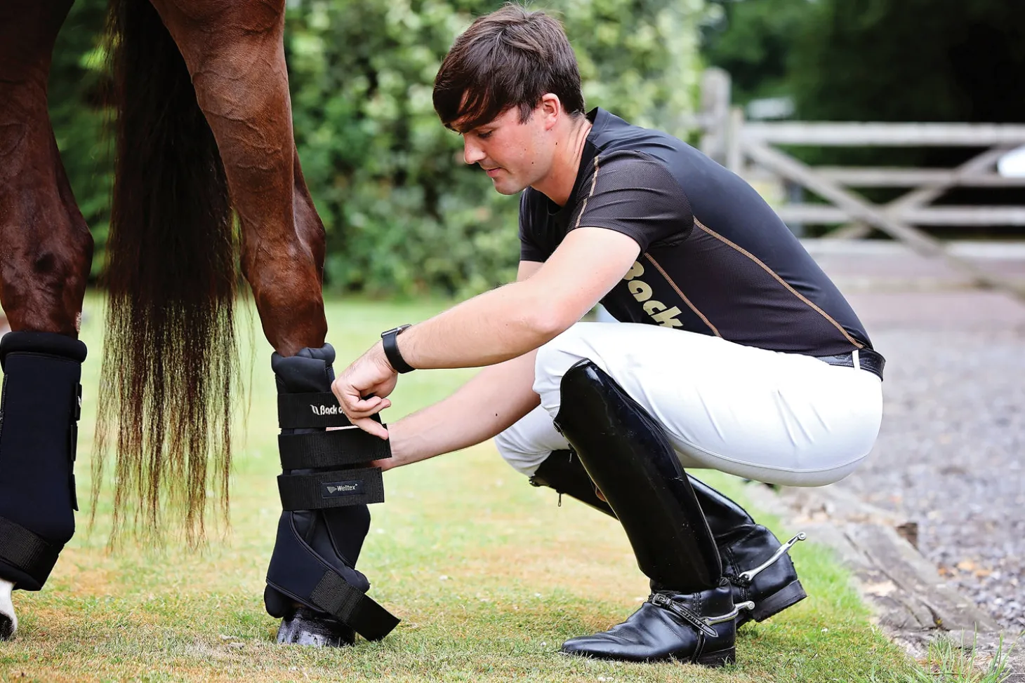 Measure the length of the canon bone to determine the correct size.