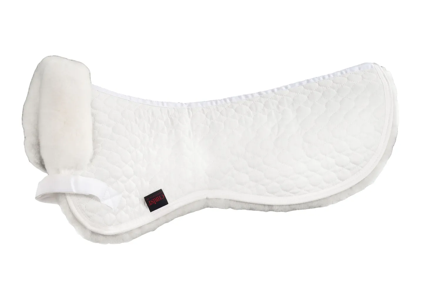 The Christ HorseDream Half Pad is a superior quality half pad with a high-withers cut, quilted cotton top and a genuine lambskin lining. The therapeutic importance of lambskin for the horse’s back is remarkable. It allows a saddle to be firmly fixed and shaped to the back and helps promote circulation, temperature balancing and saddle pressure. Naturally moisture-wicking, it promotes the horse’s comfort and aids in preventing back soreness.