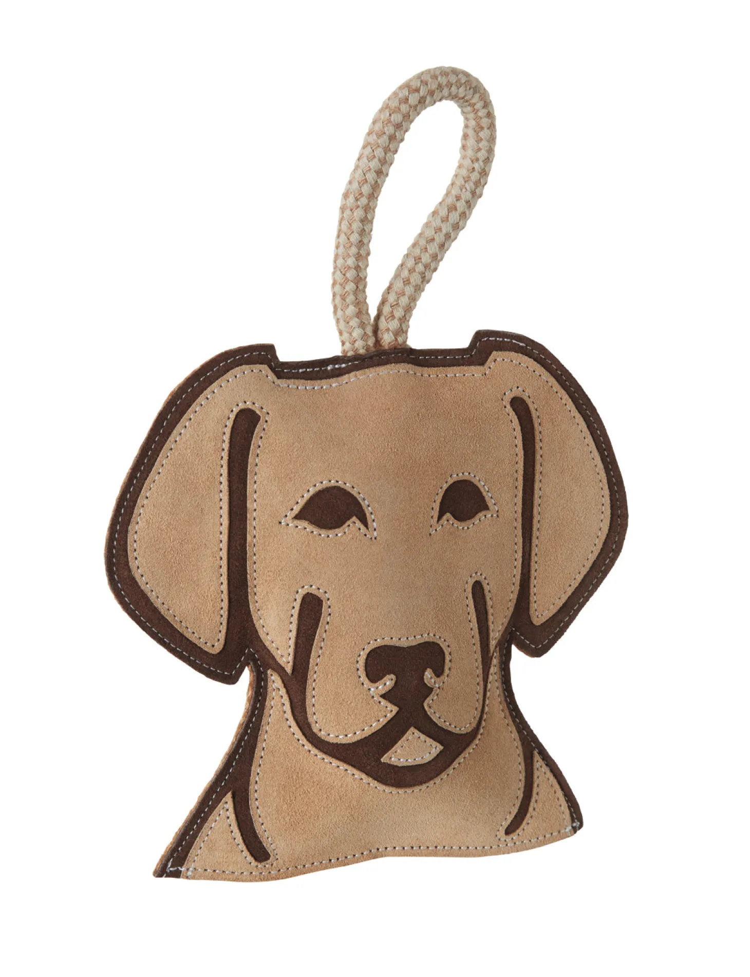 Delight your four-legged family member! Our Dover Dog Tug ‘N Squeak Toy is made to stand up to loads of canine roughhousing. Genuine suede—easy on the teeth and almost indestructible—is shaped like the head of dog. The front has a friendly expression, and the back is embossed with the Dover Saddlery logo. Equipped with a durable rope top loop for pulling and a squeaker inside for maximum fun.