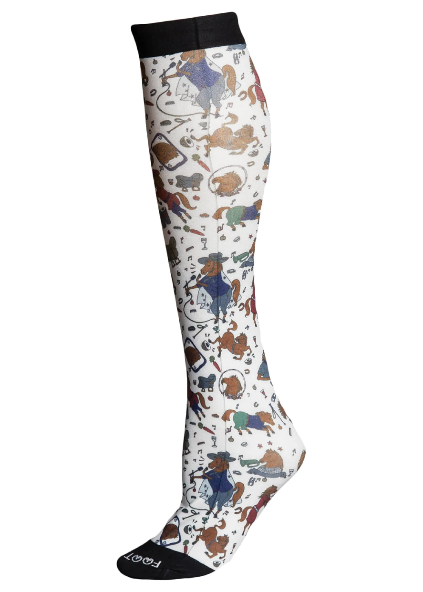 DS Footprintz are next-level riding socks fit for even the most serious riders. No-Peek Cuffs with a 1 1/2″ wide band of black ensure the fun colors, patterns and graphics you love won’t show at the top of your tall boots.