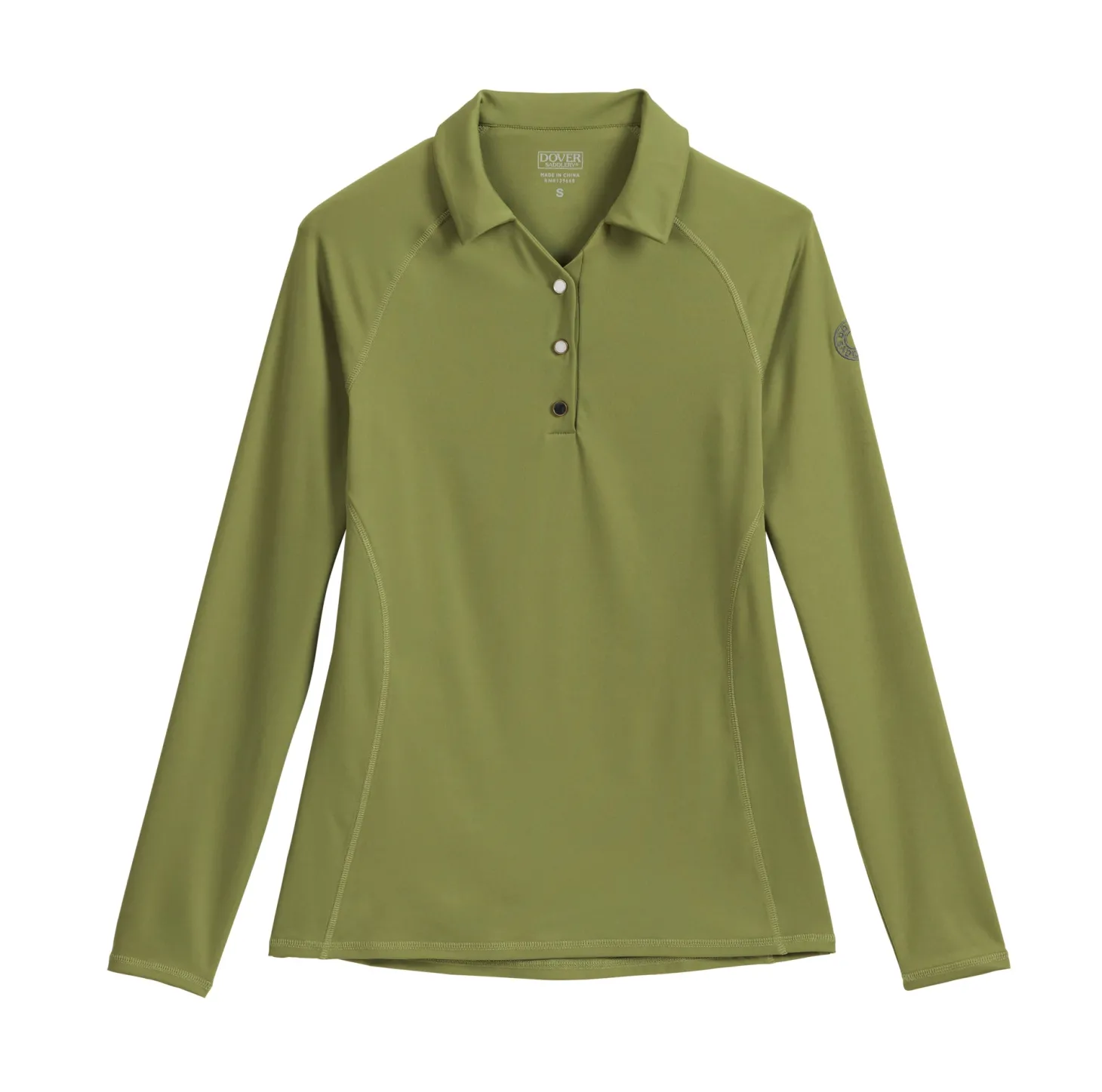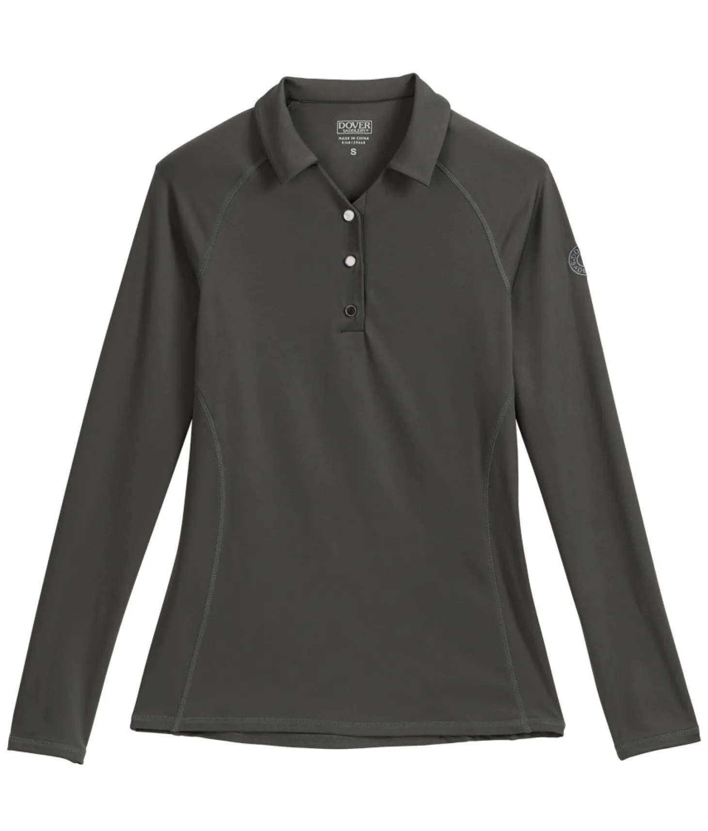 A comfortable update to the classic polo! Flattering stitch lines and pearly snaps give the DS Galen Long Sleeve Shirt its feminine look. Silky-soft, moisture-wicking, LuxTech fabric keeps you warm yet provides breathability. Slightly dropped hem offers extra coverage. Brand embroidery on one sleeve.