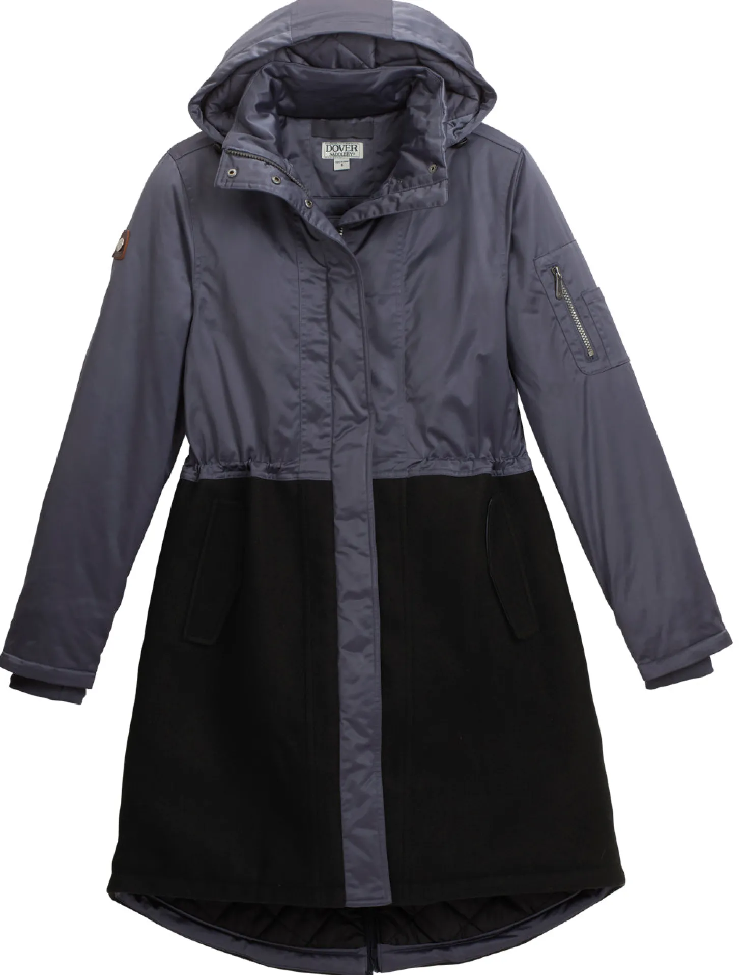 A two-way front zipper and a rear riding gusset open to provide comfort in the saddle. Sleeve cuffs seal out drafts. Deep pockets and a key-sized pocket on one sleeve offer secure storage.