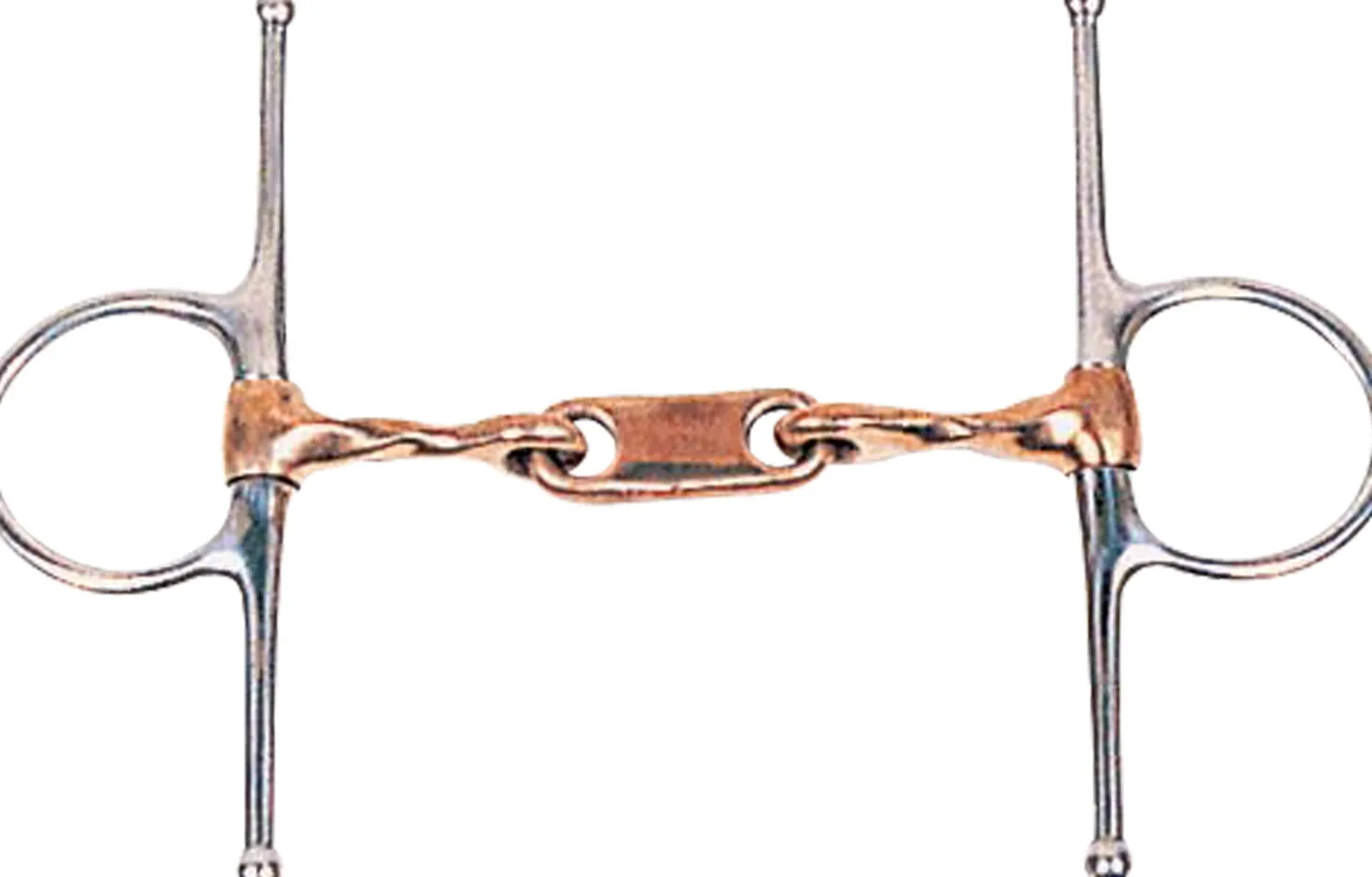 The DS Twisted Copper Dr. Bristol Full Cheek Bit features a flat center link. Stainless steel full cheeks.