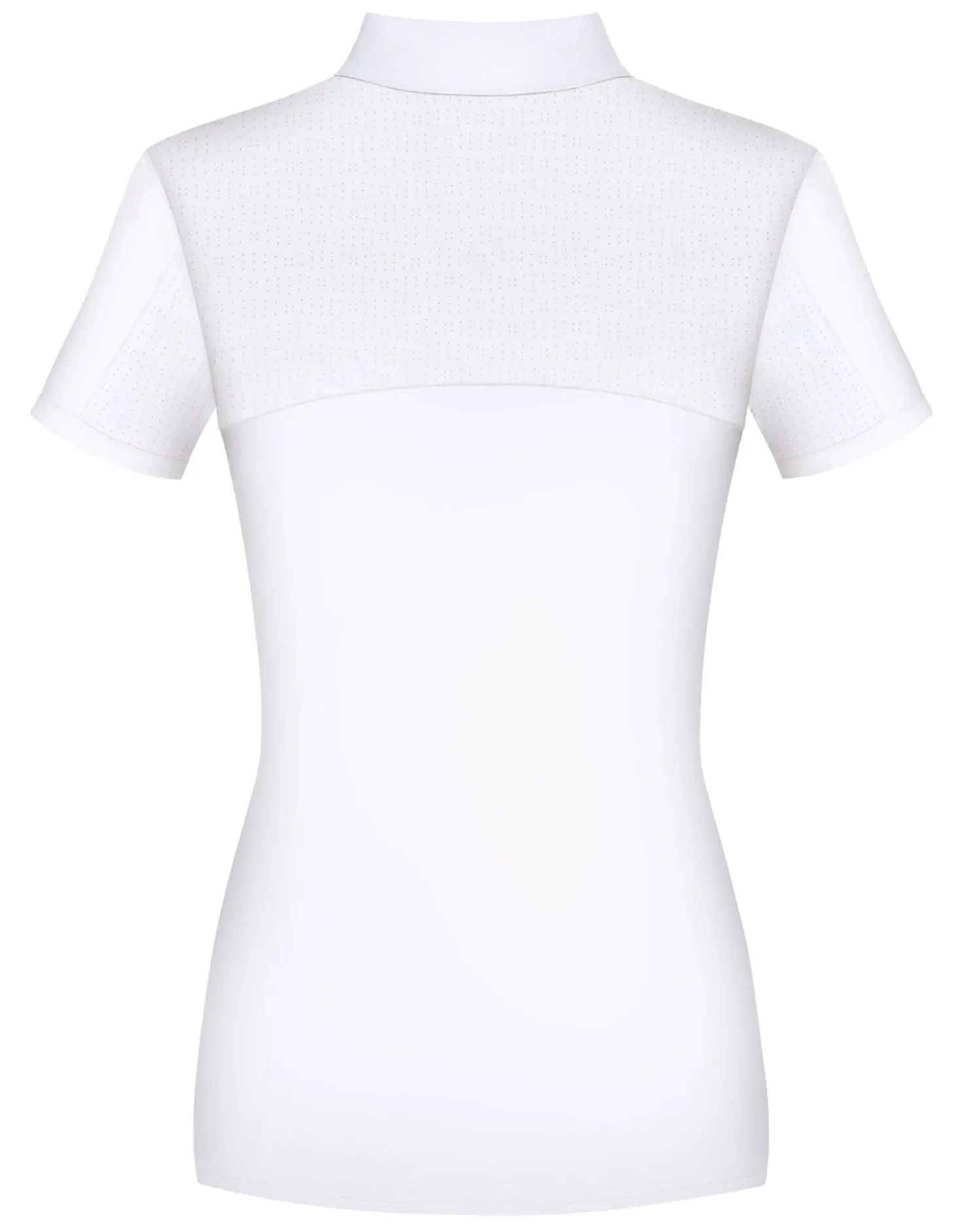 The Fair Play® Ingrid Short Sleeve Show Shirt is elegant and feminine in elastic and breathable recycled fabric. It provides enhanced airflow and protection from UV rays. Perforated inserts on the back and under the sleeves let air circulate.