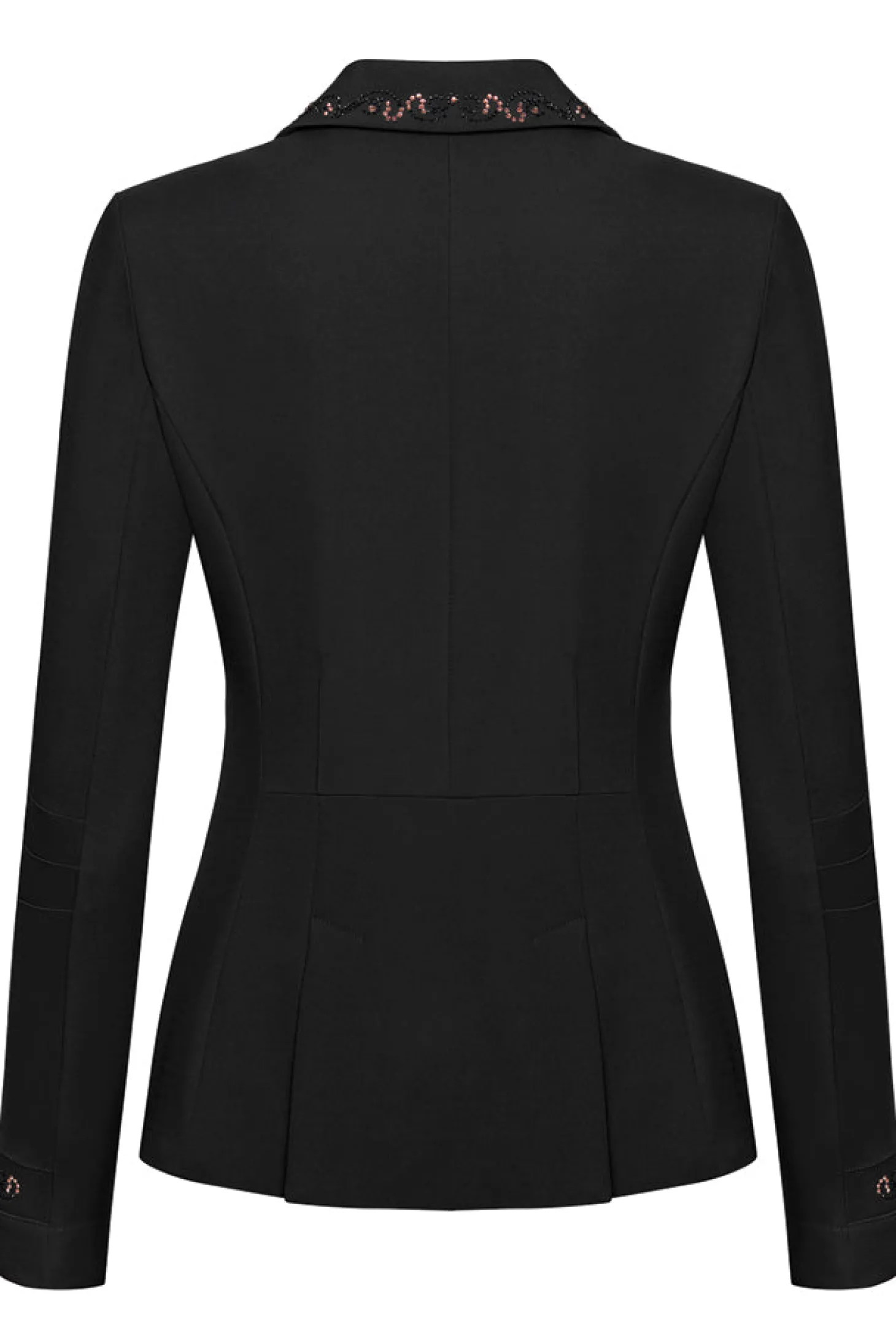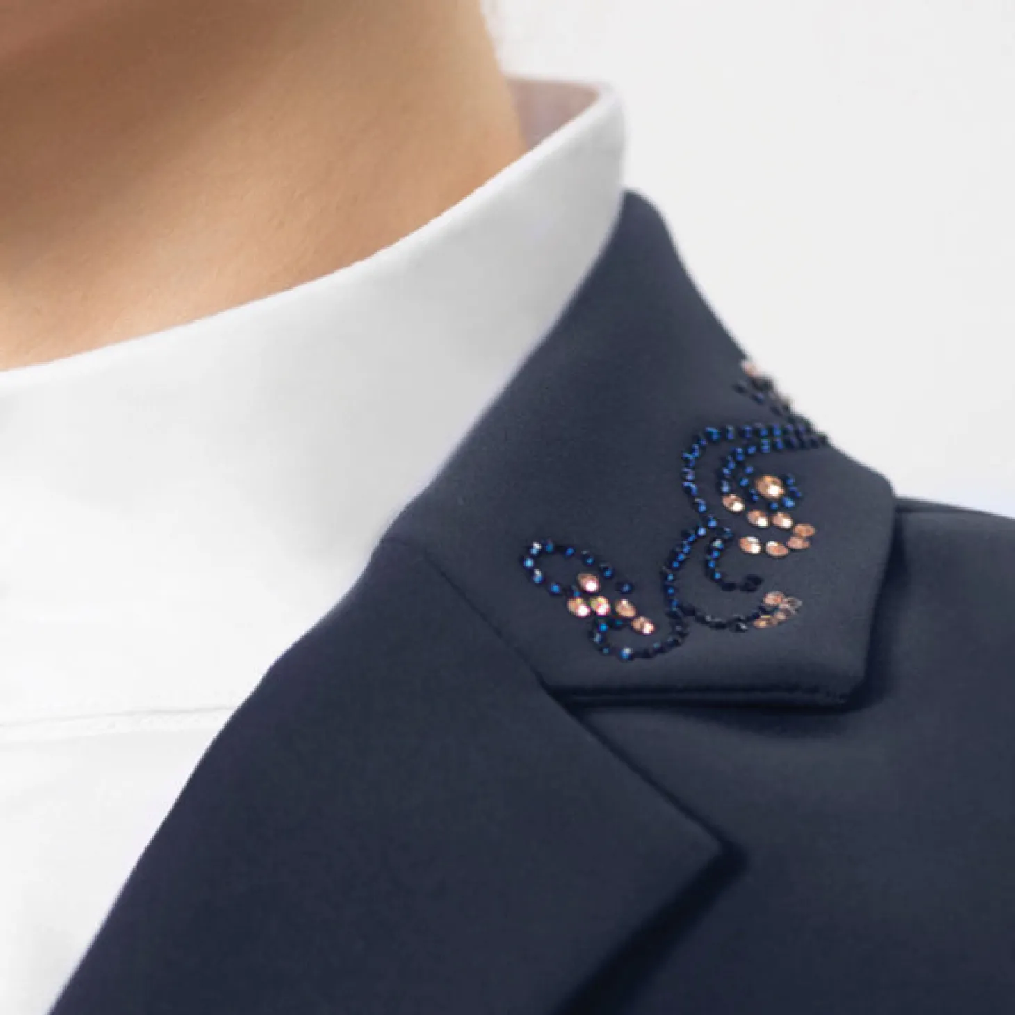 The Taylor Chic Show Coat is crafted in Poland and lined with a highly breathable mesh. Discreet eyelets under the armpits let heat escape, while rose gold and tonal crystals accent the collar and cuffs.
