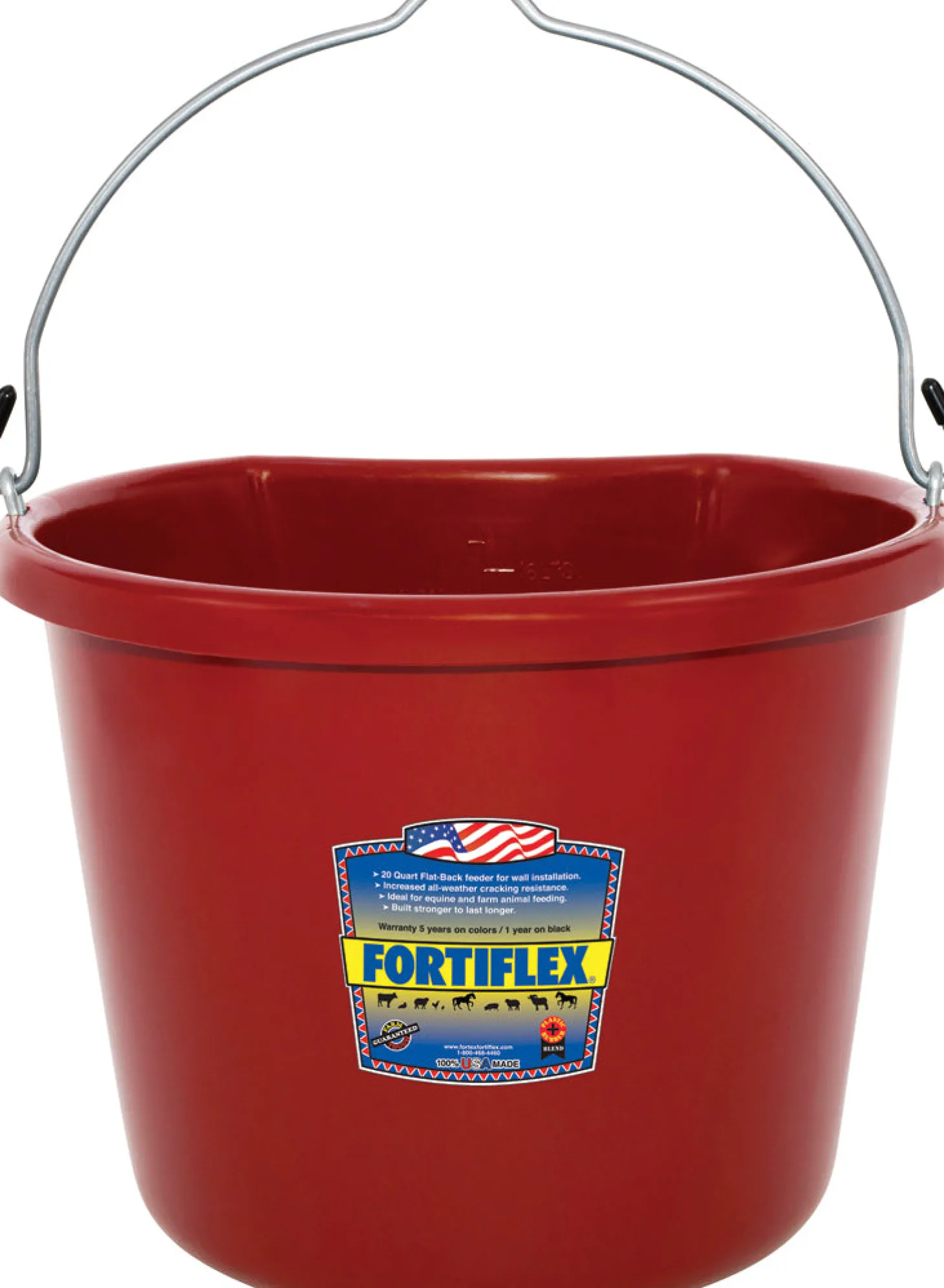 The Fortiflex® Standard 20-Quart Flatback Bucket stays flat against a wall or fence post, providing a stable container for watering or feeding your livestock. Made of heavy-duty FORTALLOY® rubber-polyethylene, it won’t crack or break even in extreme cold. Its economical price and assortment of colors makes this a smart choice for any stable.
