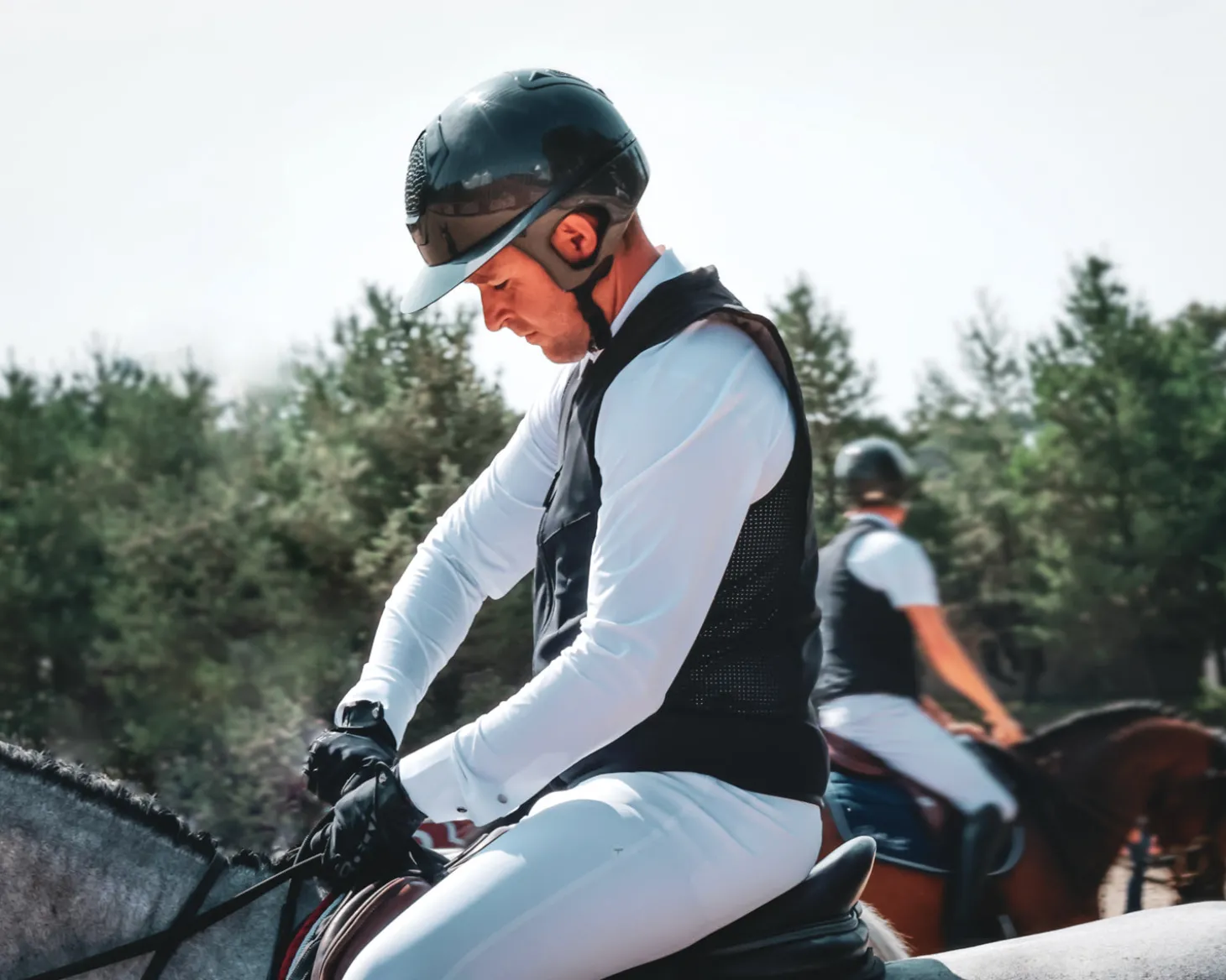 The Freejump® Adults’ Airbag Vest is the first equestrian air vest to be approved by the NF S72- 800-2022 standard. France is the first country to adopt a standard governing the manufacture of equestrian airbags (PPE–Personal Protective Equipment). While waiting for a European harmonization, the NF S72-800-2022 standard provides riders with increased protection by regulating the protective surface, the speed of the inflation and by imposing much more severe impact tests on the vests.