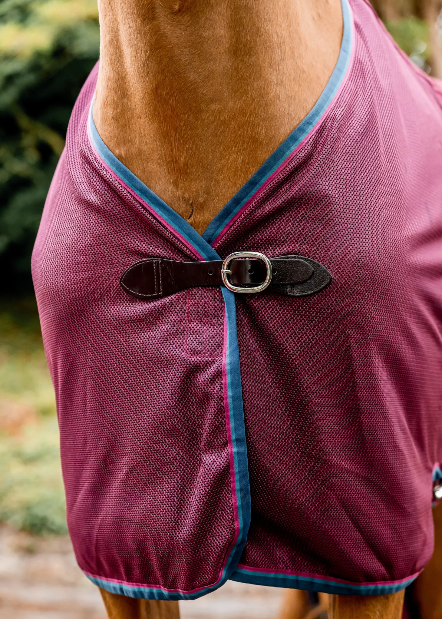 A shine-enhancing lining inside the shoulders and the protective, extra-wide tail flap helps maintain a healthy looking coat. The travel rug is beautifully styled in the manner of a dress sheet, with the addition of dual Leg Arches™ to let is wrap closely to the belly.