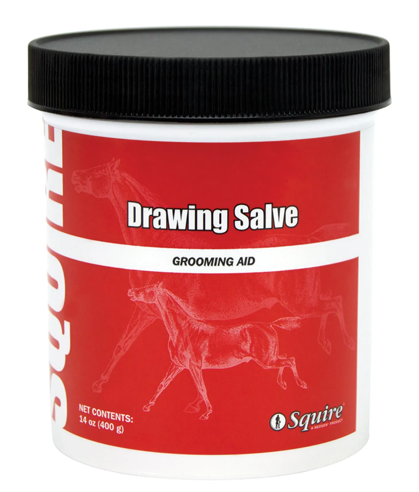 Drawing Salve is used to treat superficial wounds, cuts and abrasions. It can also be used as a drawing poultice on hoof abscesses and ailments. 14 ounces.
