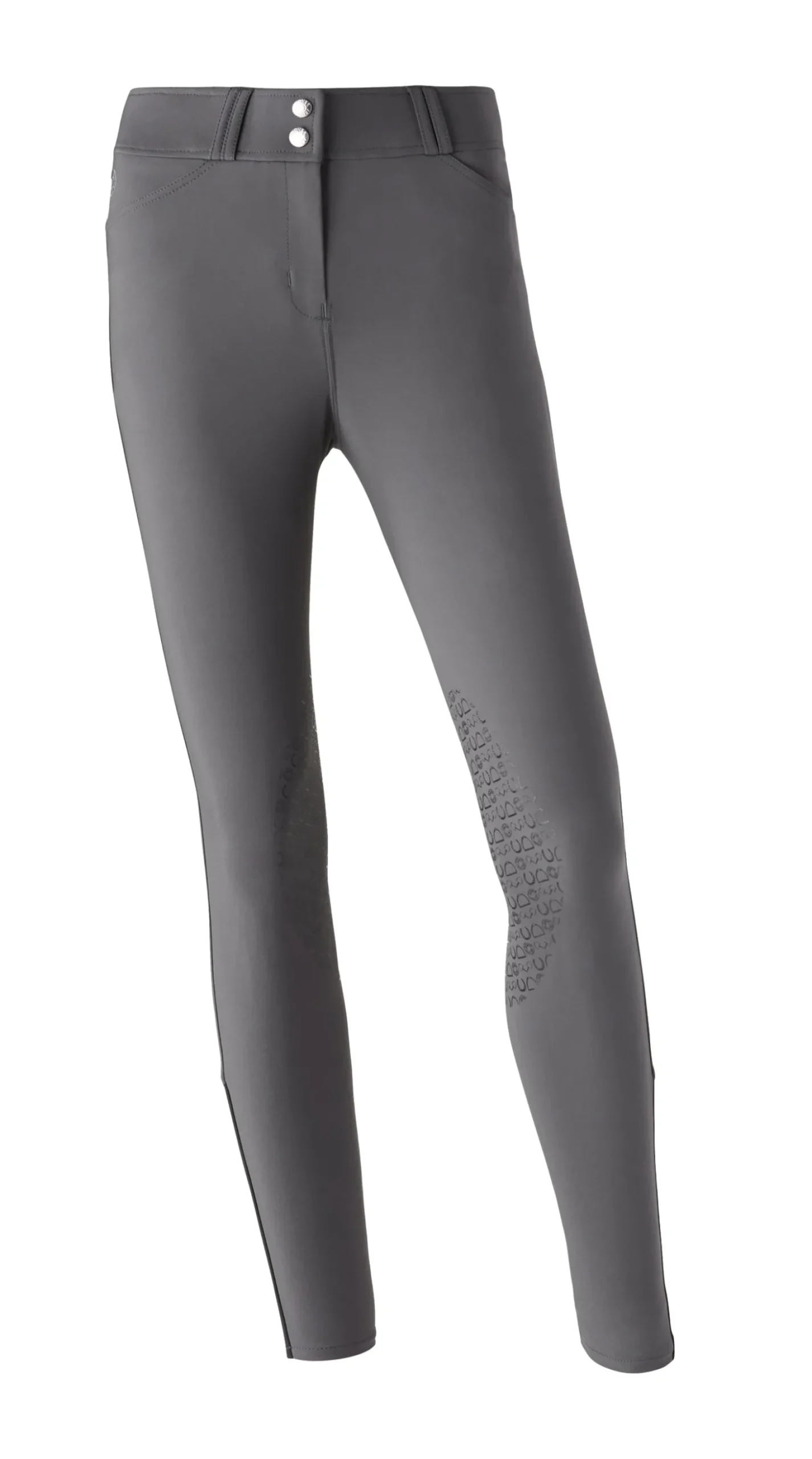 - Silicone grip knee patches in an equestrian-inspired print.