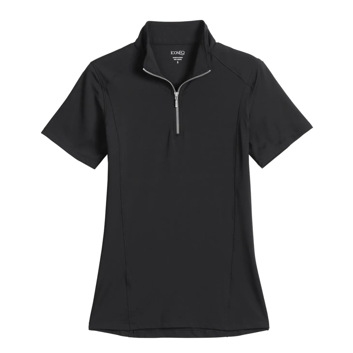 - Mock collar and quarter zipper.
