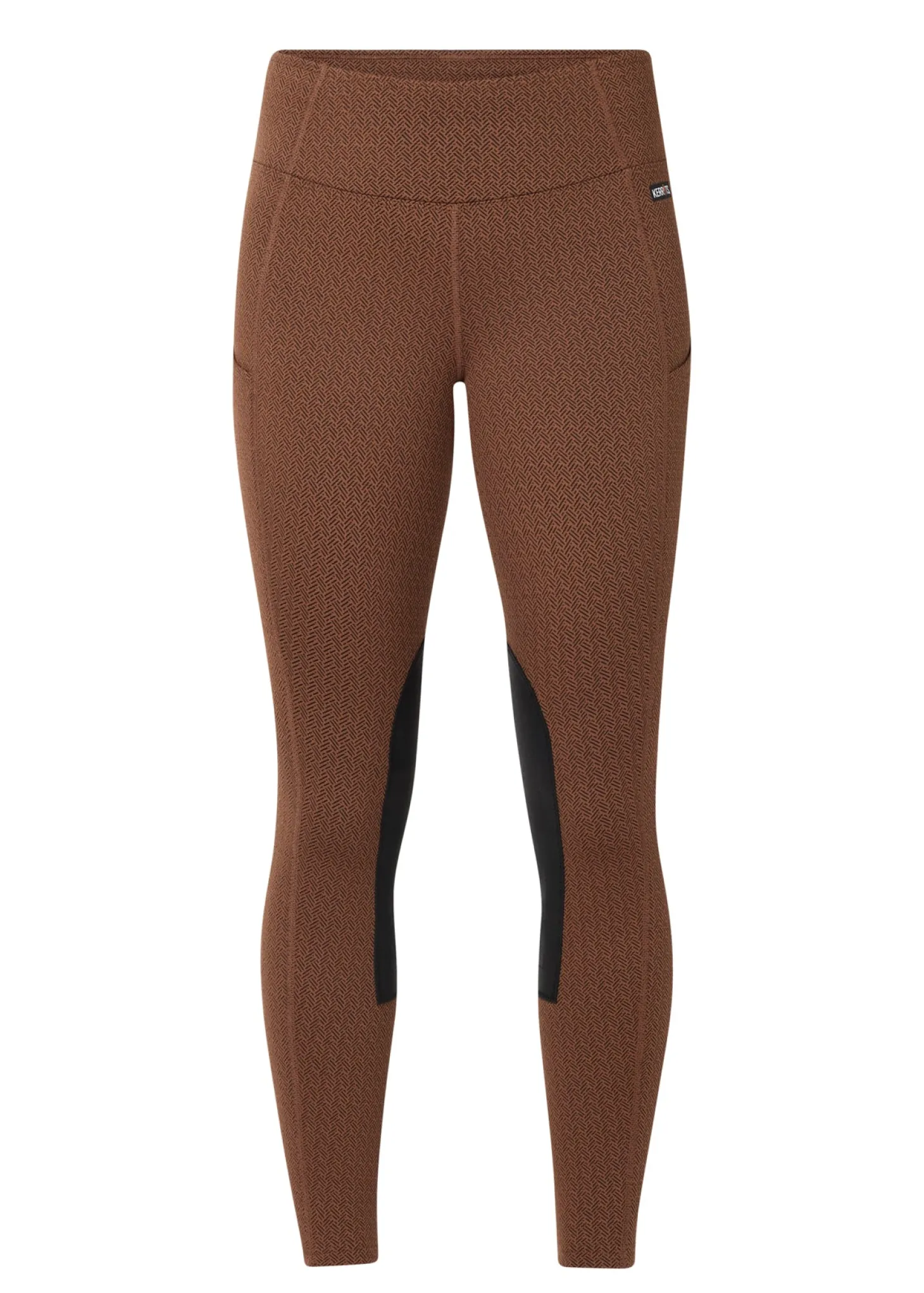 Kerrits® Fleece Lite II Knee-Patch Tight is the lightest weight winter tight of the Kerrits line. Designed to keep you comfortable in the shoulder seasons and while riding indoors all winter, it features fun shades of the brand’s herringbone jacquard pattern. Cozy brushed fleece inside has an insulating effect. Four-way stretch allows optimal mobility.