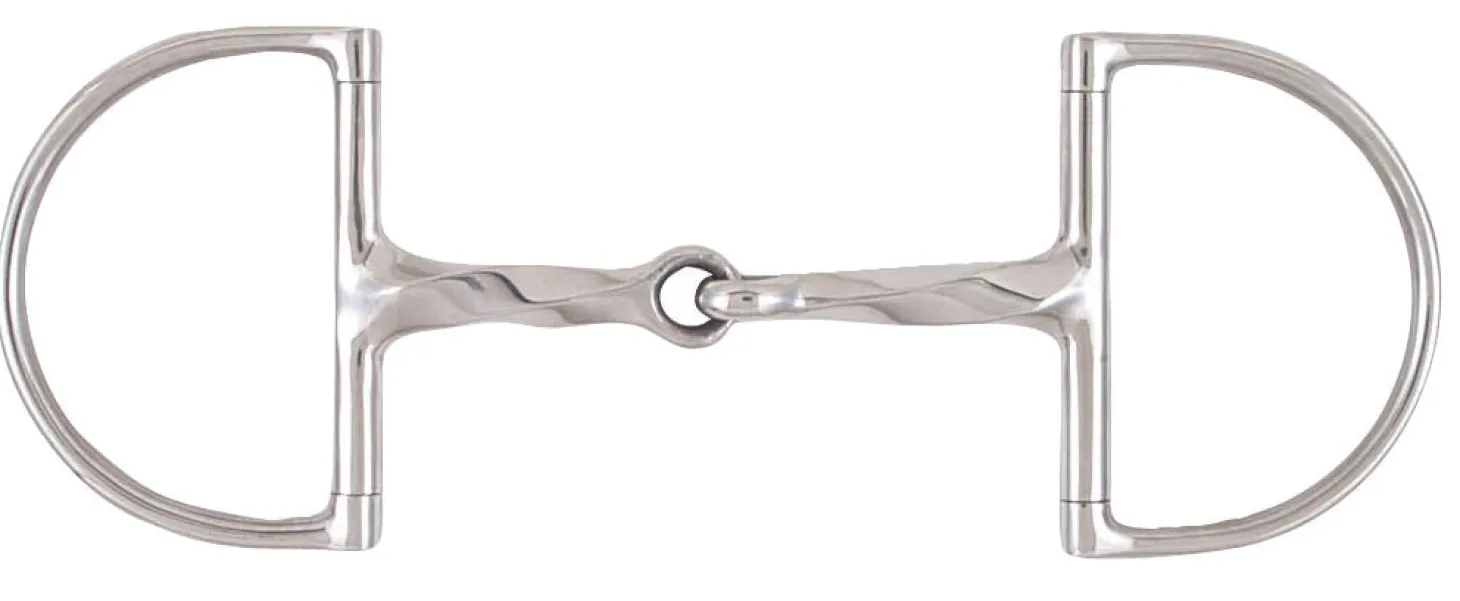 The Korsteel® Slow Twist Hunter D-Ring Bit acts on the tongue, bars and lips. This bit is made of stainless steel and styled with classic dee cheeks. 14mm mouth; 75mm rings.