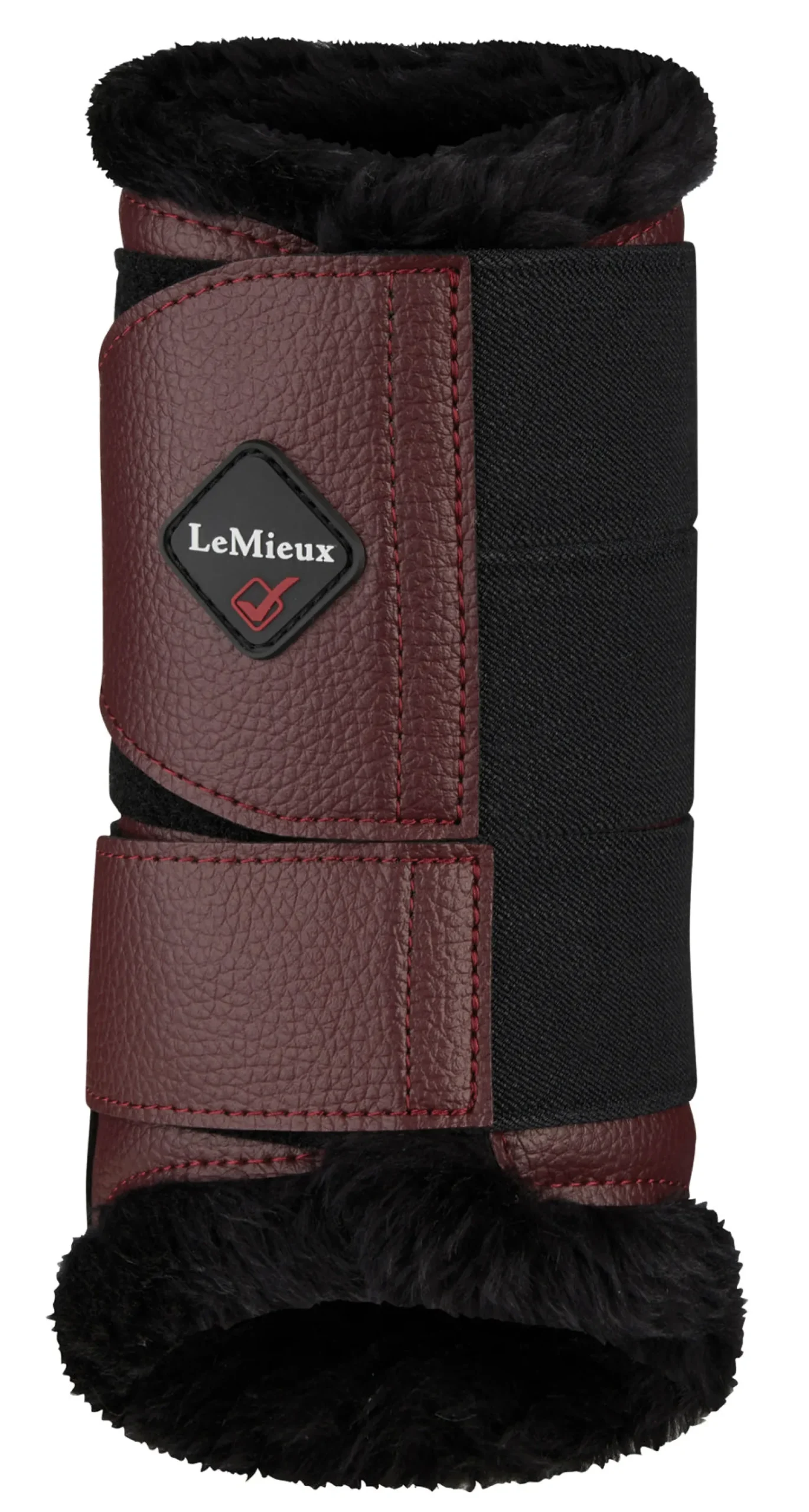 For exercise or turnout, LeMieux® Fleece-Lined Brushing Boots snug up to your horse’s legs beautifully. An attractive, durable, grained faux-leather outer offers a high-quality appearance, while the extra-soft and luxurious fleece lining against your horse prevents rubbing and distributes pressure.