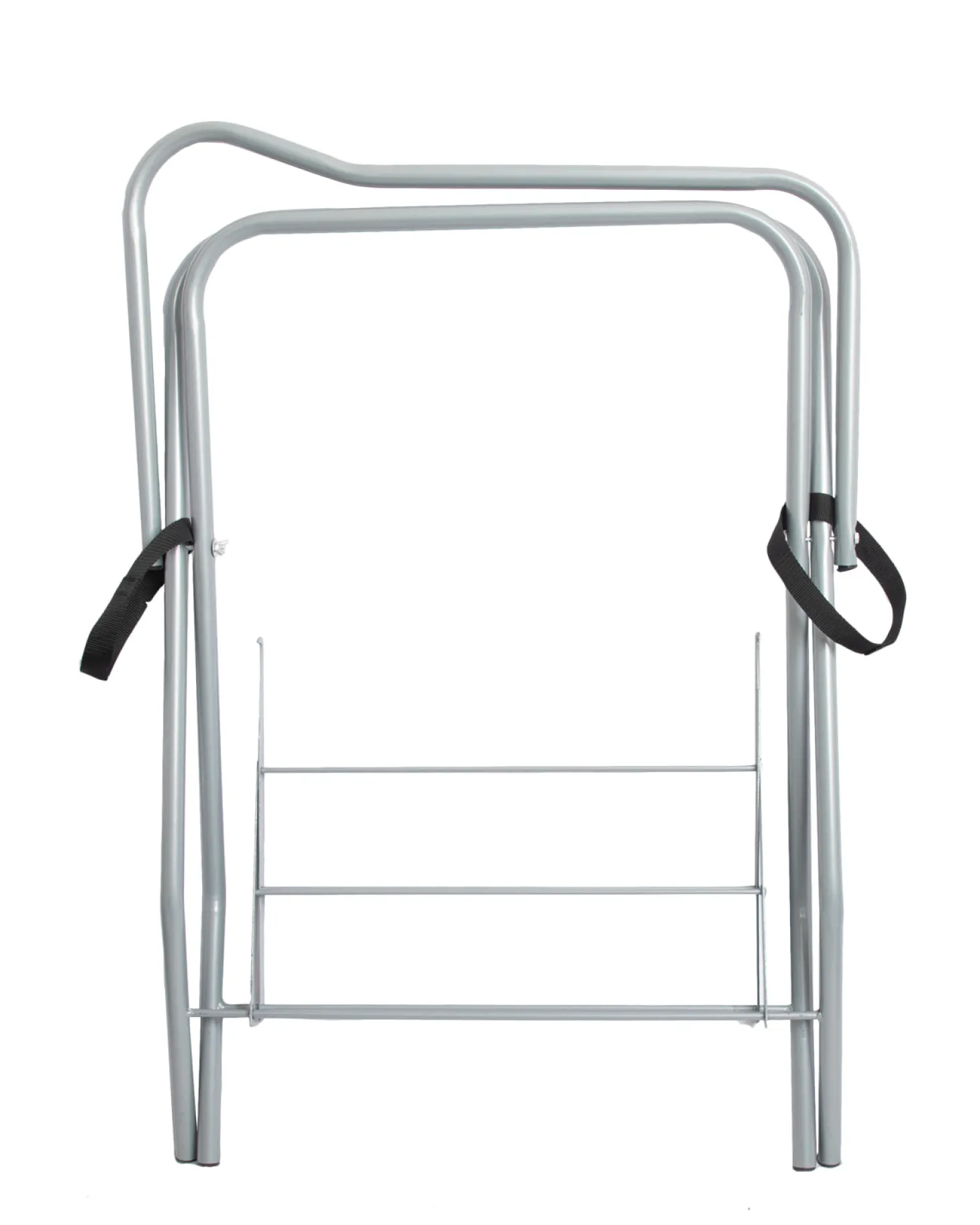 Sturdy, durable and easy to transport, our Portable Saddle Stand works exceptionally well in the tack room at home or on the road. It is crafted of iron tubing with a baked-on powder coat finish that helps prevent rusting.