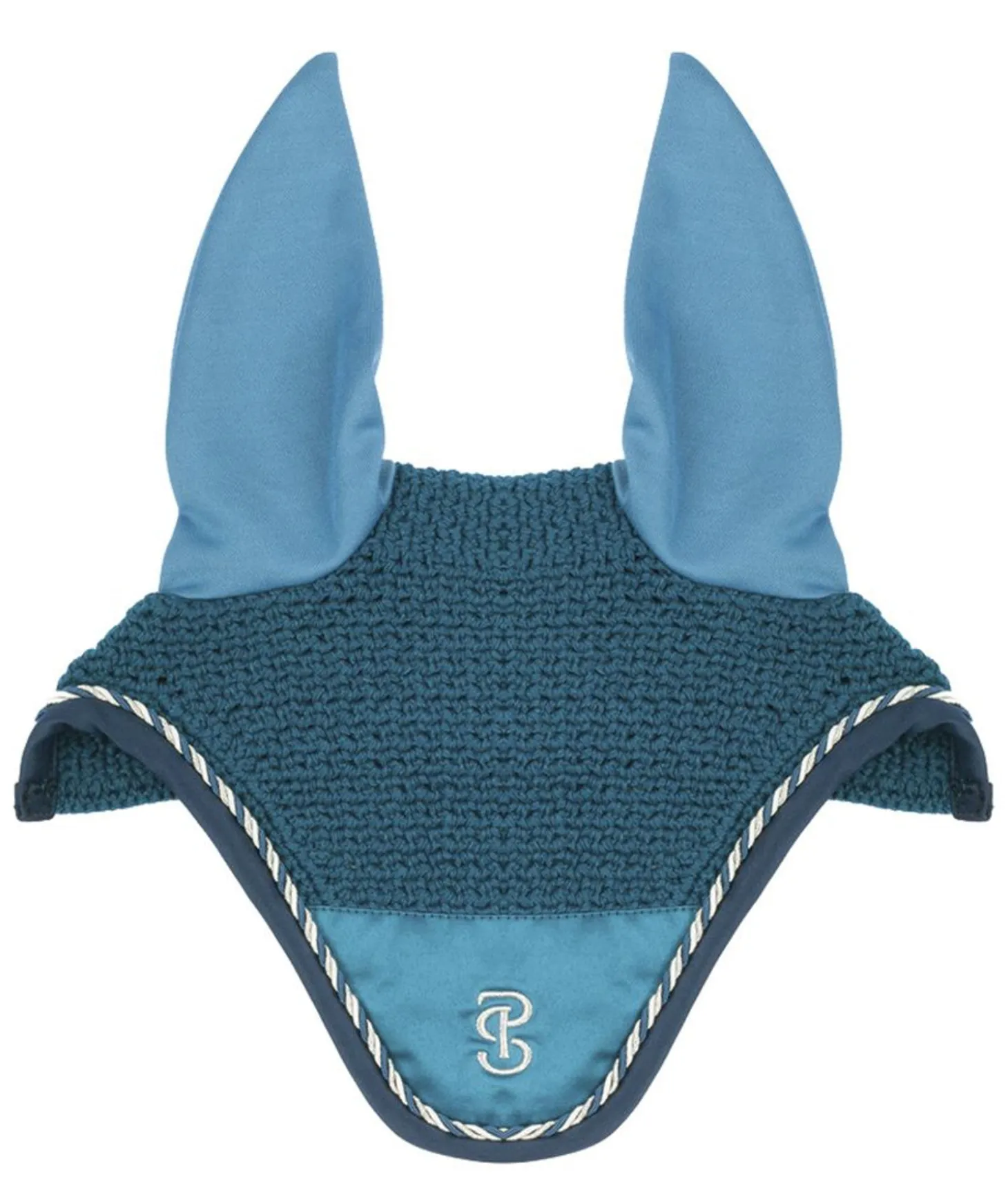 The PS of Sweden Signature Ear Bonnet has a shapely fit and elasticized ear covers. This fly bonnet is made from stretchy, breathable, antibacterial quick-dry material with a hand-knitted crochet body. Designed to comfort sensitive horses, it features decorative details, including braided rope trim, a fabric front embroidered with logo and soft fabric trim.