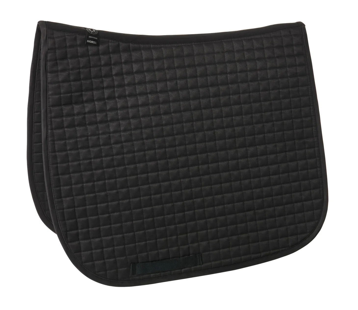 The Rider’s International™ Contour Dressage Pad has an anatomically shaped topline to offer an improved fit and optimal comfort on your horse’s back. Based on a best-selling saddle pad, it is durable, attractive and easy-care.