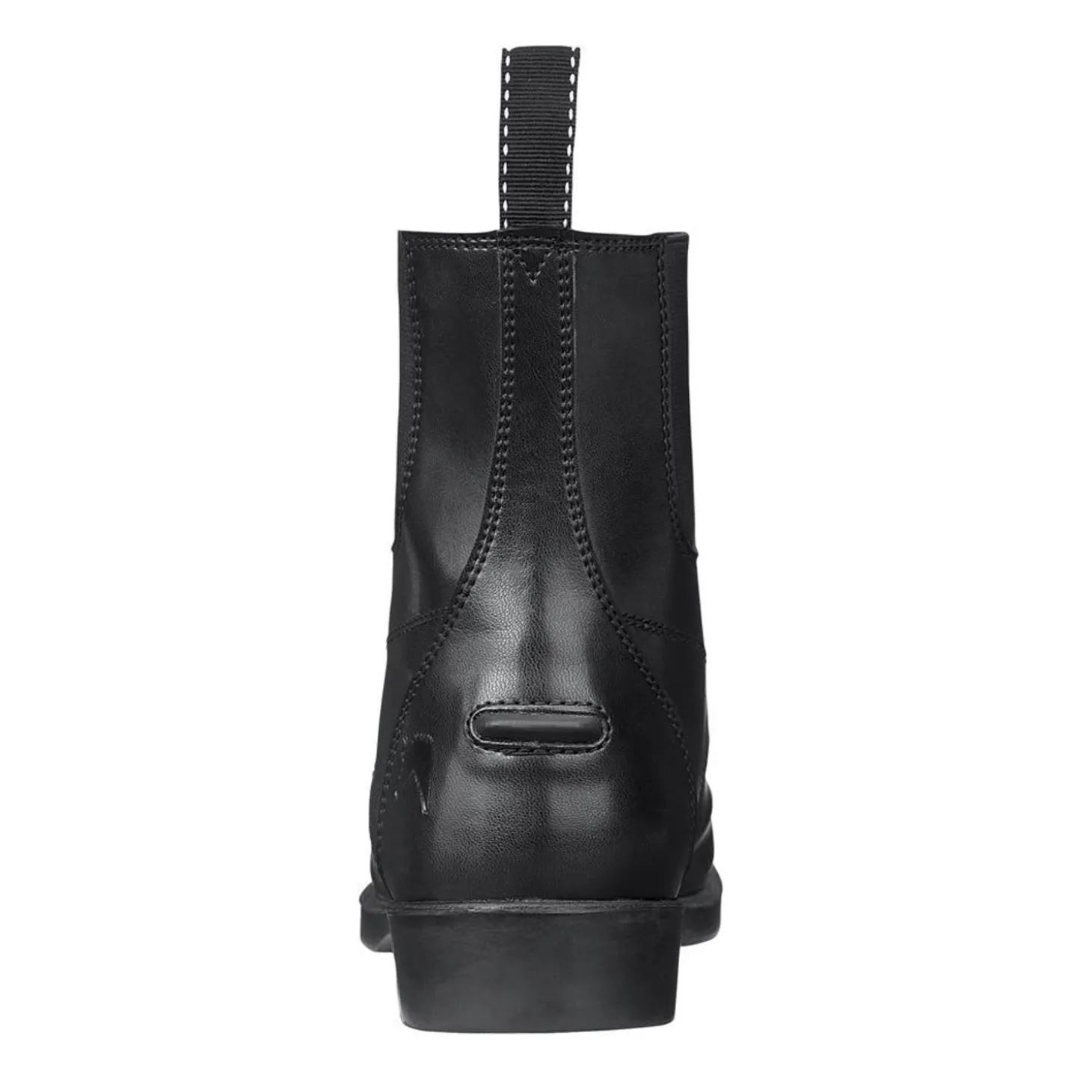 This hardwearing children’s riding boot has an easy-care synthetic leather upper that wipes clean with a damp cloth. Classic features include a punched toe cap and spur rests.
