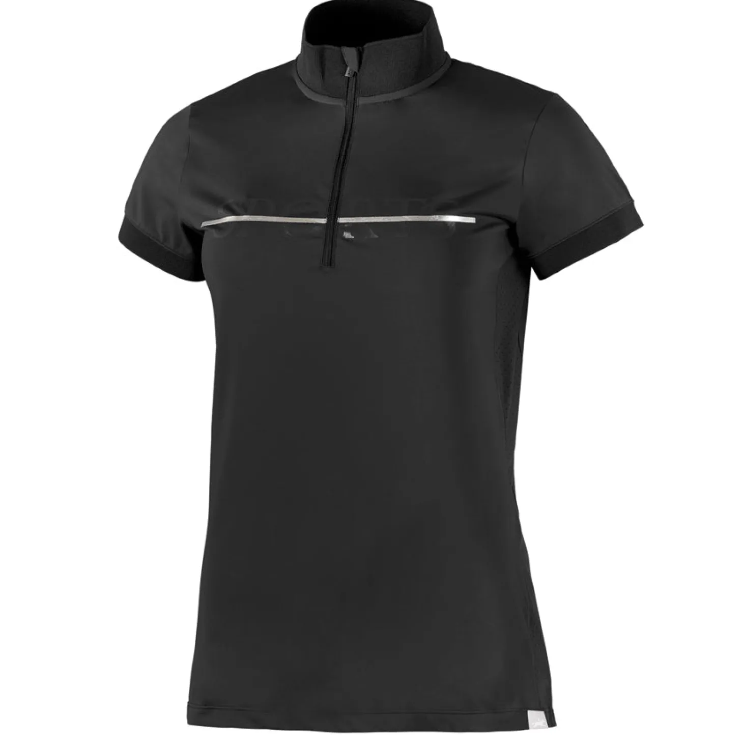 Train to your heart’s content in this highly stretchy Schockemöhle Fortuna Short Sleeve Shirt. Perforated side panels deliver breathability to keep you cool. A zip placket and tonal ribknit trim keep your look smart. Shimmering decorative logo prints on front and back.