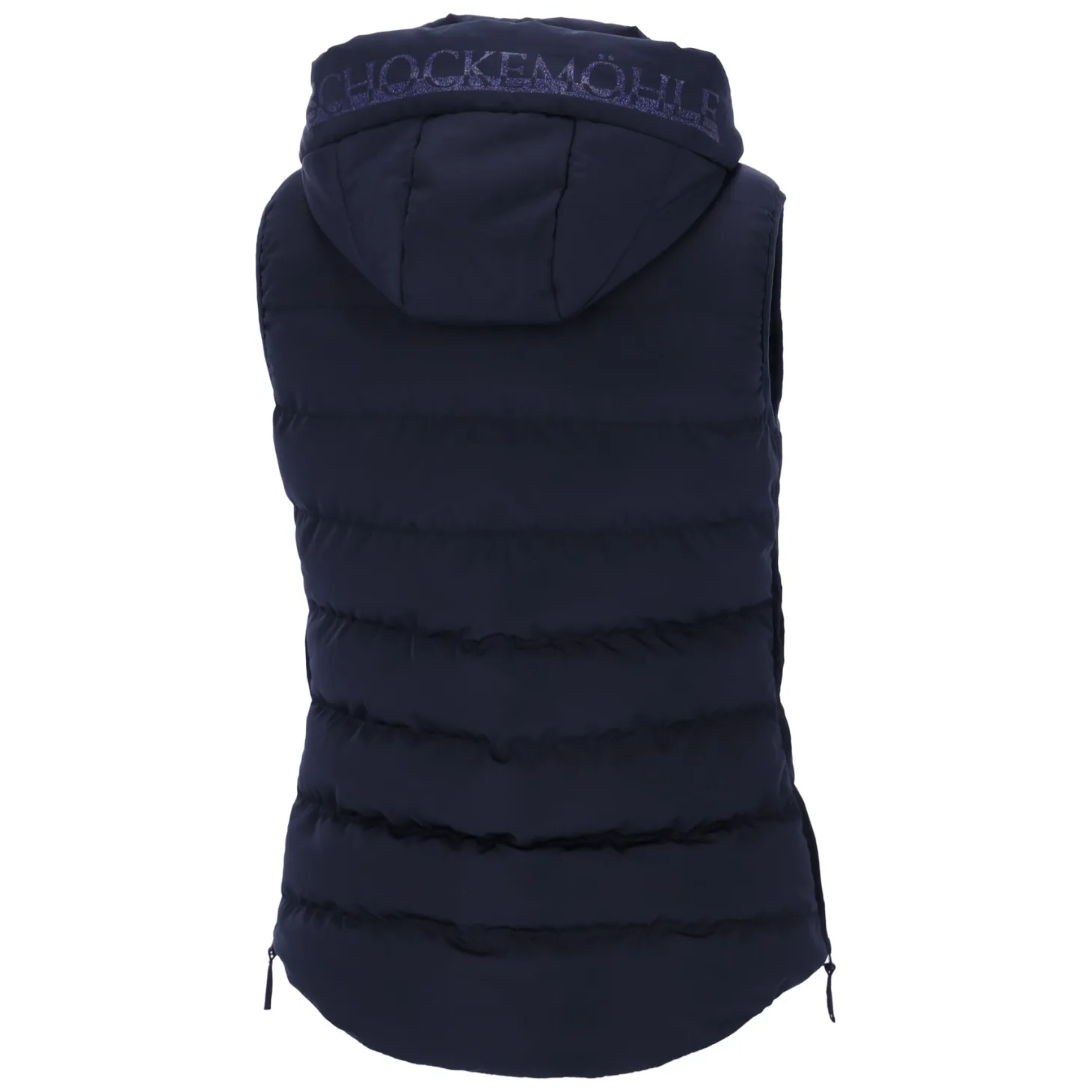 Schockemöhle SpMalea Vest combines functionality with a modern design for active days outdoors. Detachable hood can be adjusted with press studs and the glitter print logo on hood adds Schockemöhle sophistication. Two-way front zipper, side zippers with inserts, and armholes edged with elasticated tape allows for ventilation and freedom of movement. Sleek welt pockets with concealed zip for riding essentials. Logo horse embroidery on the chest adds an elegant accent.
