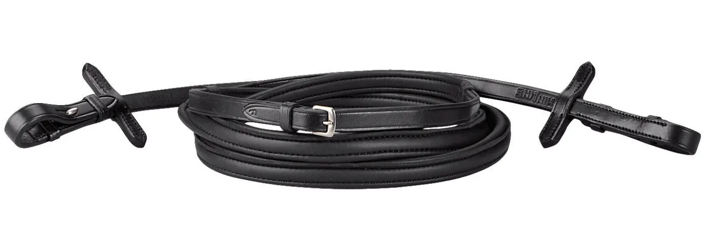 ThinLine® Dressage Reins are covered in smooth ThinLine material so they conform to your grip while you’re riding and return to their original state afterward. Traditionally styled with sewn-on stops, they have an appearance that’s suitable for competition and the durability to stand up to everyday use. They’re available with either buckle ends or hook stud ends.